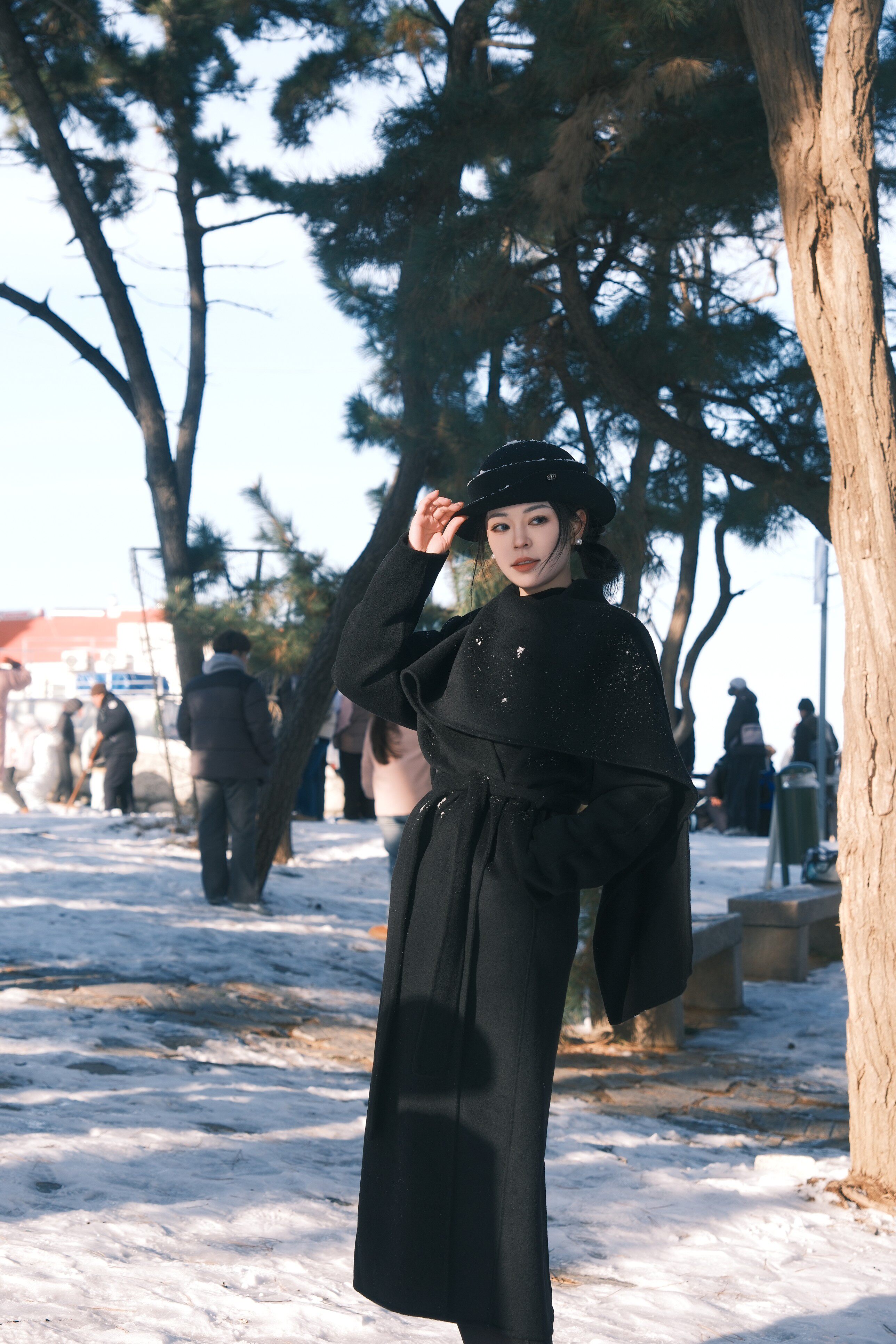 瑞雪兆丰年,大衣质感非常高贵,雪地里拍摄很出片!穿着版型优雅美观,朋友都夸好看,自己也觉得很好看,十分推荐!