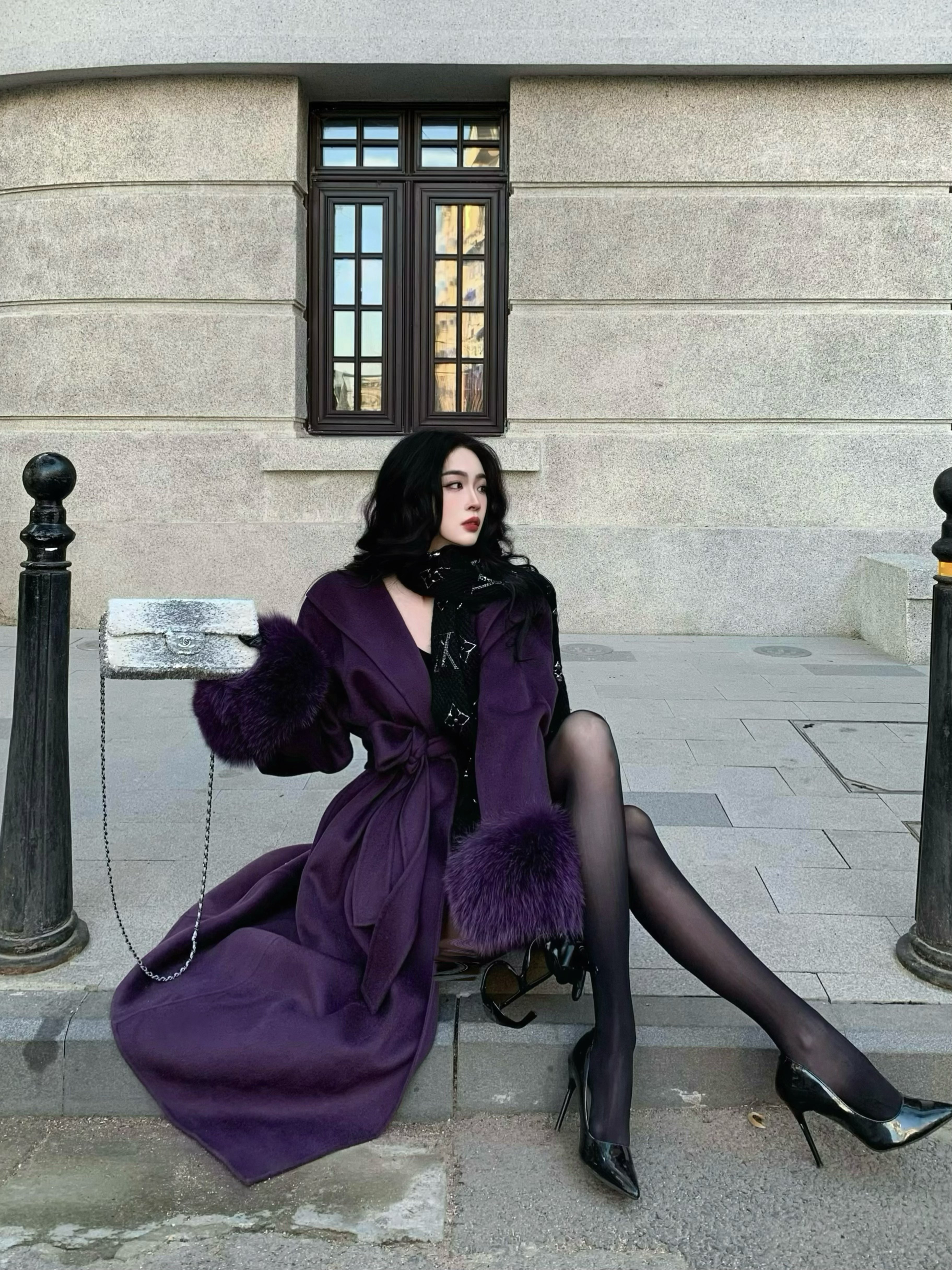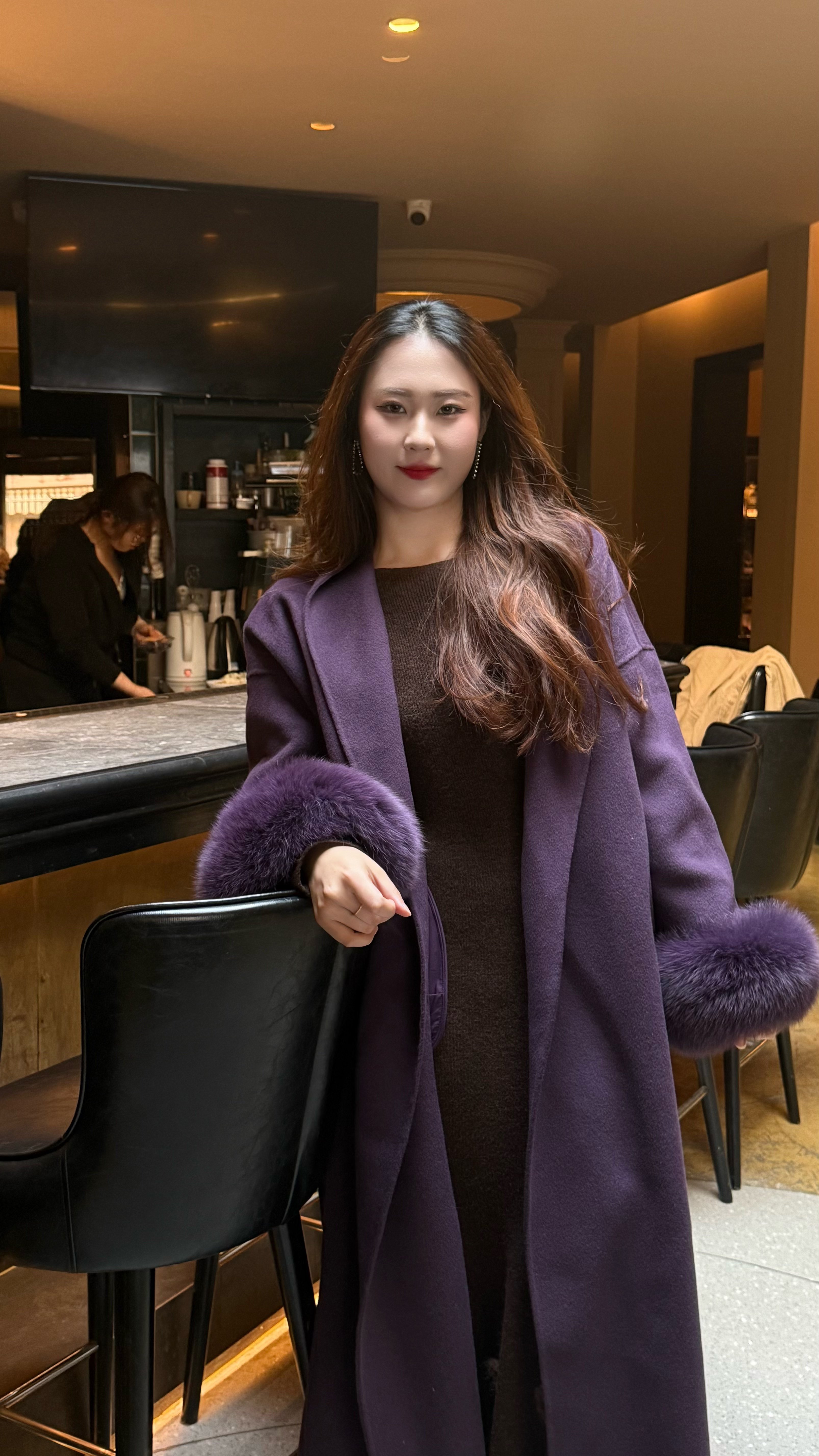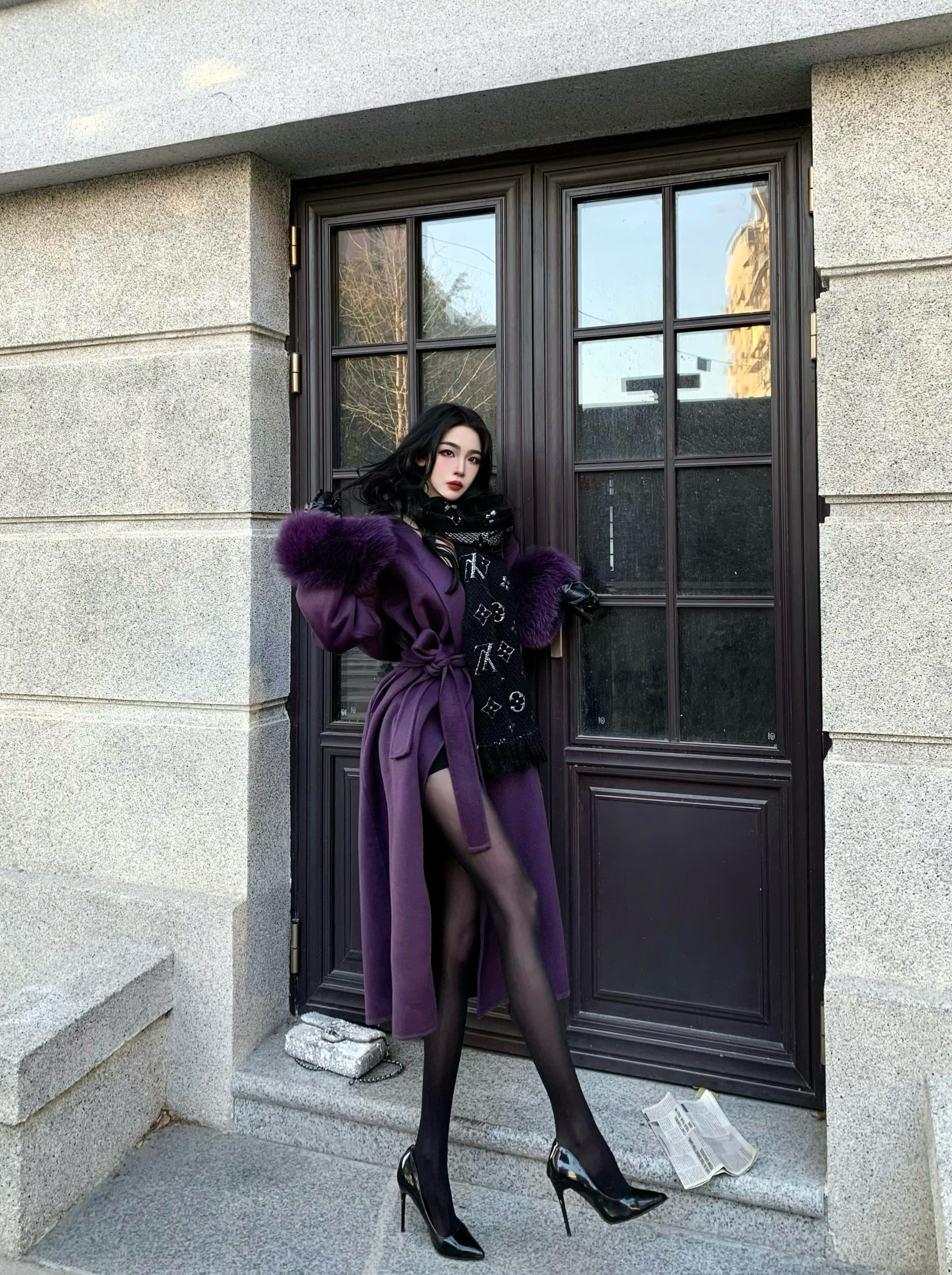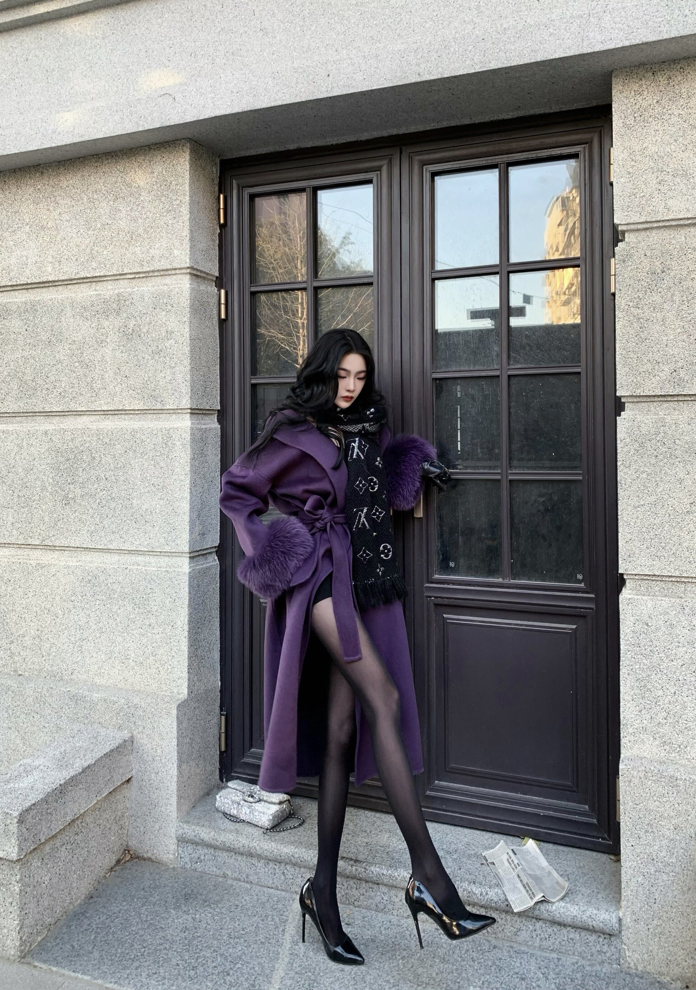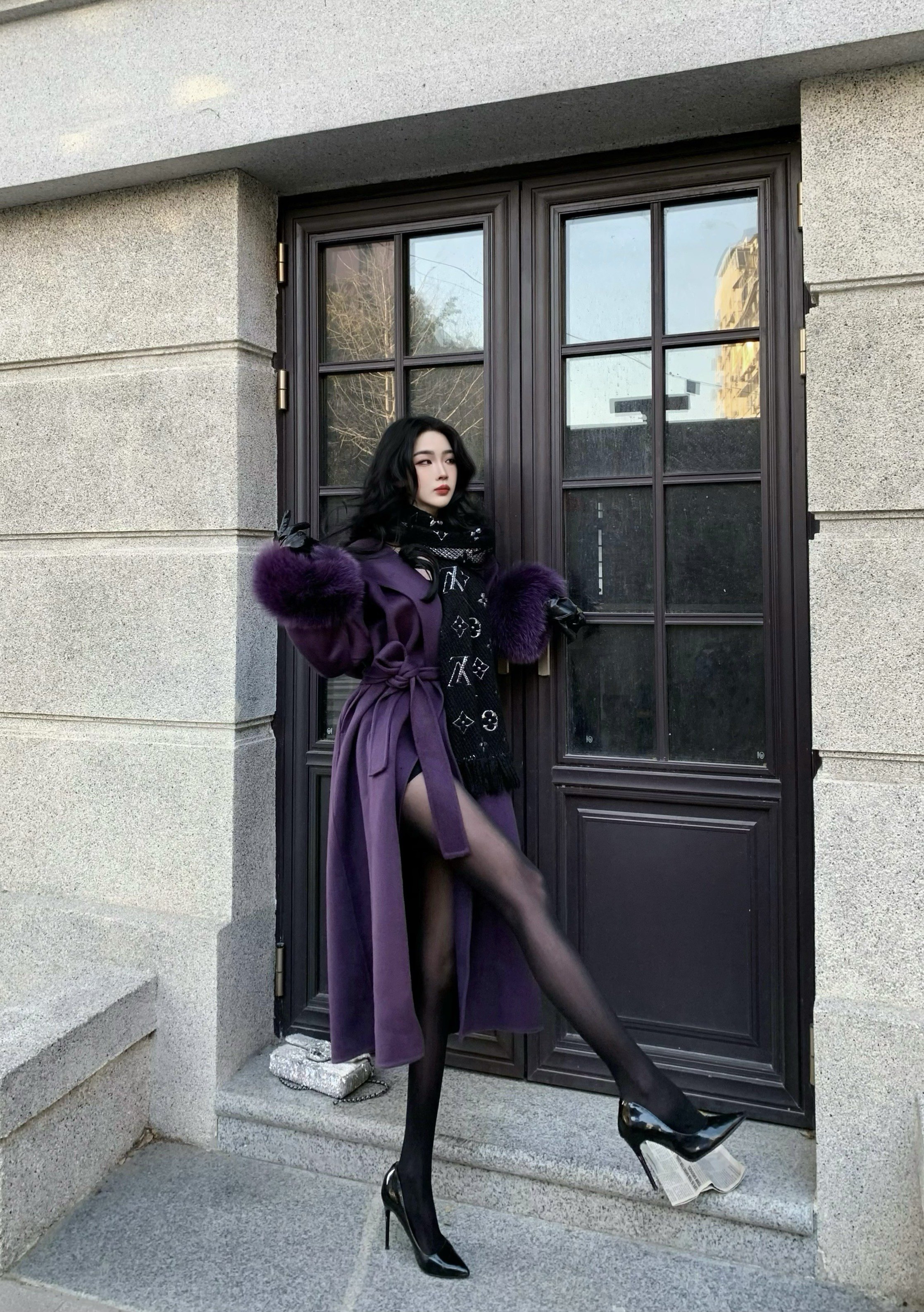 这件紫大衣质感绝了!毛袖显贵气,上身温柔又高级。