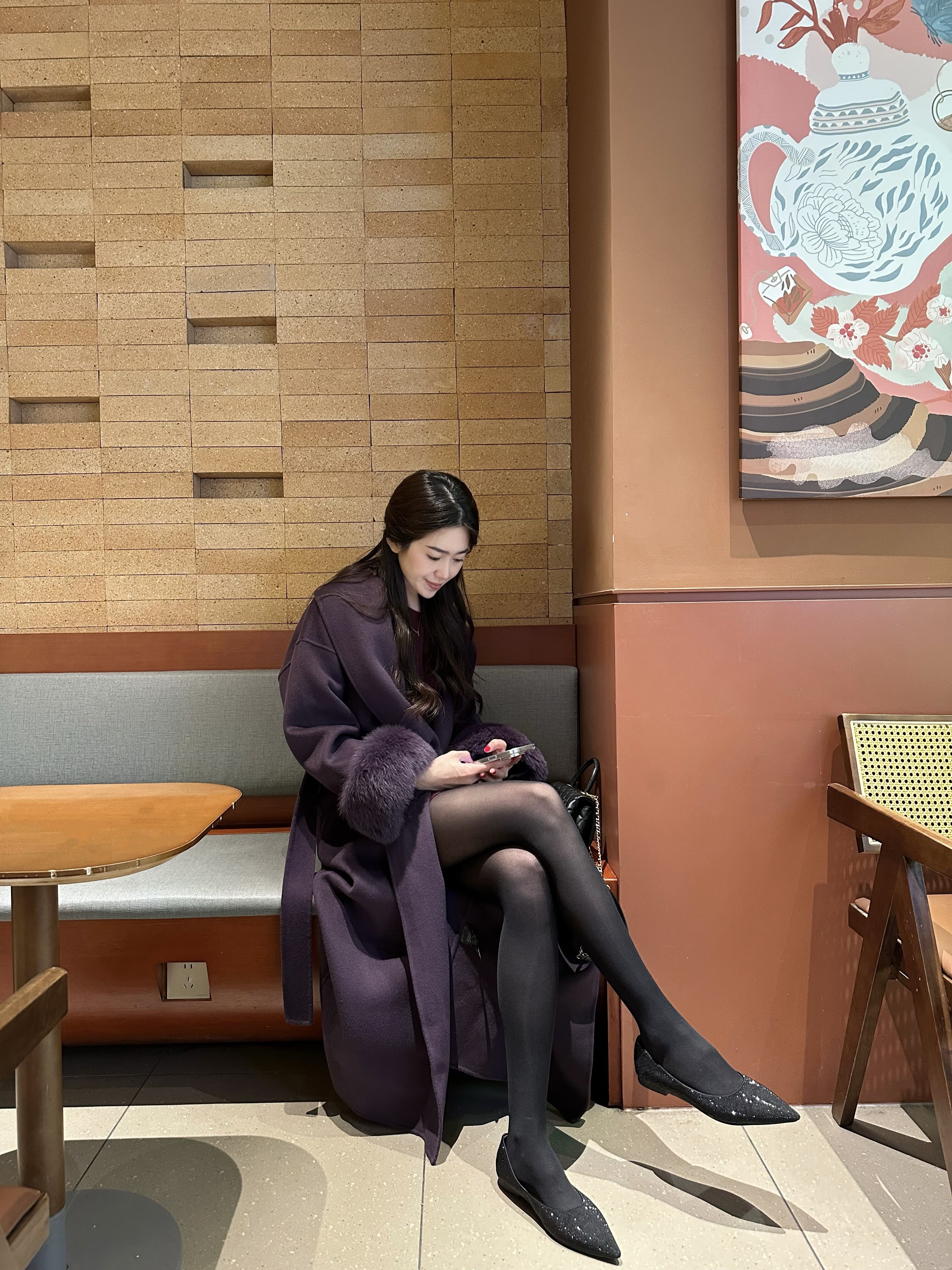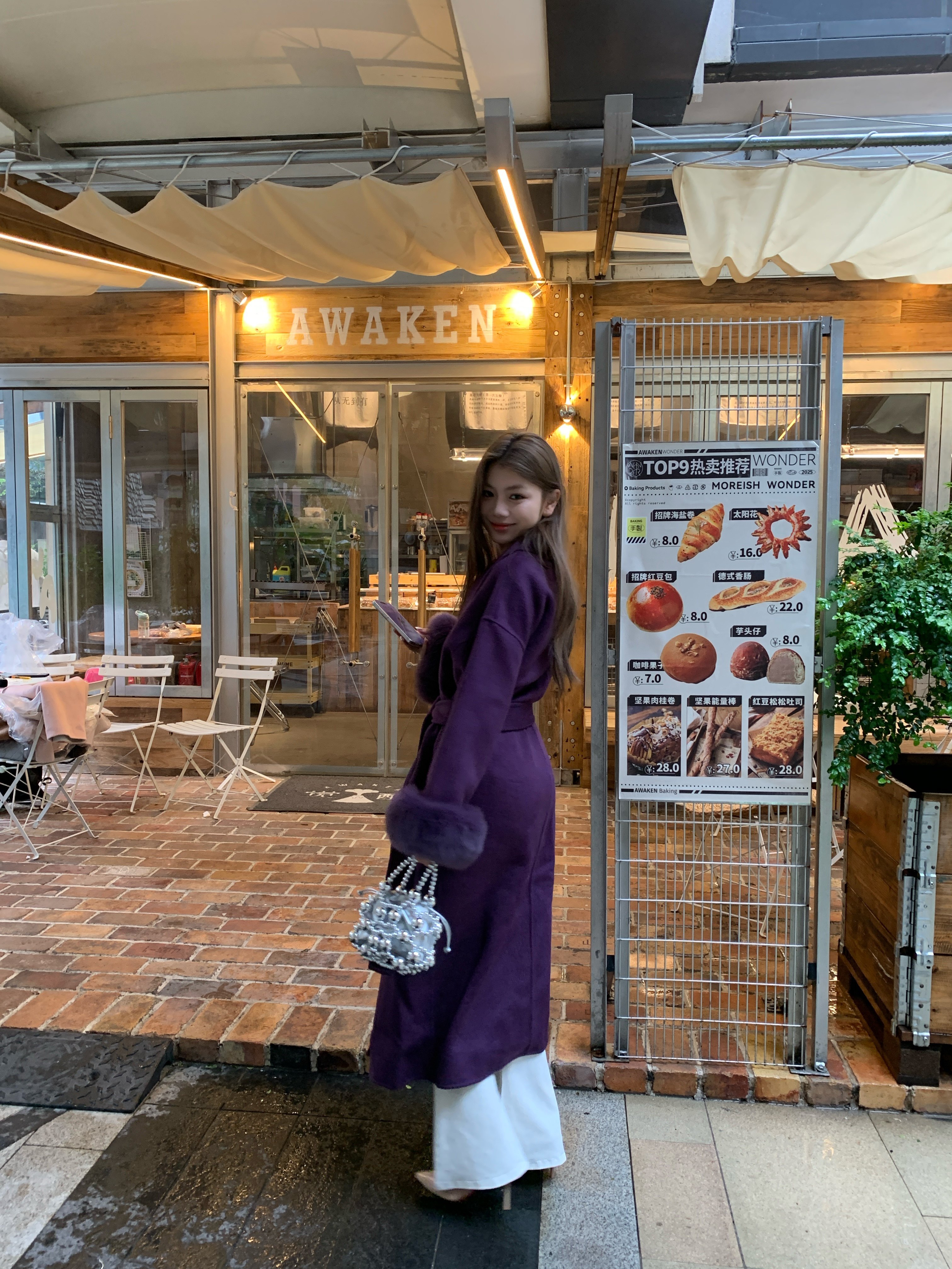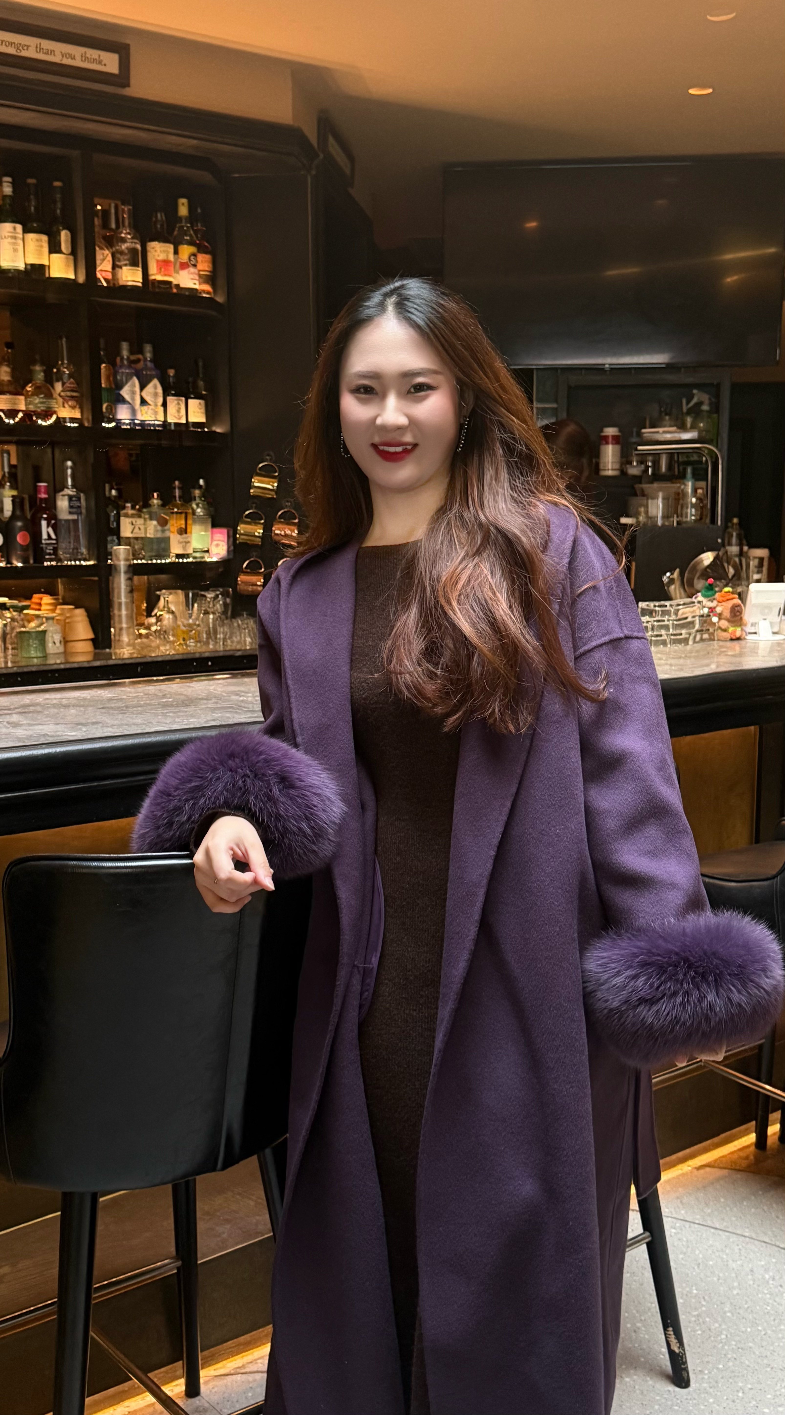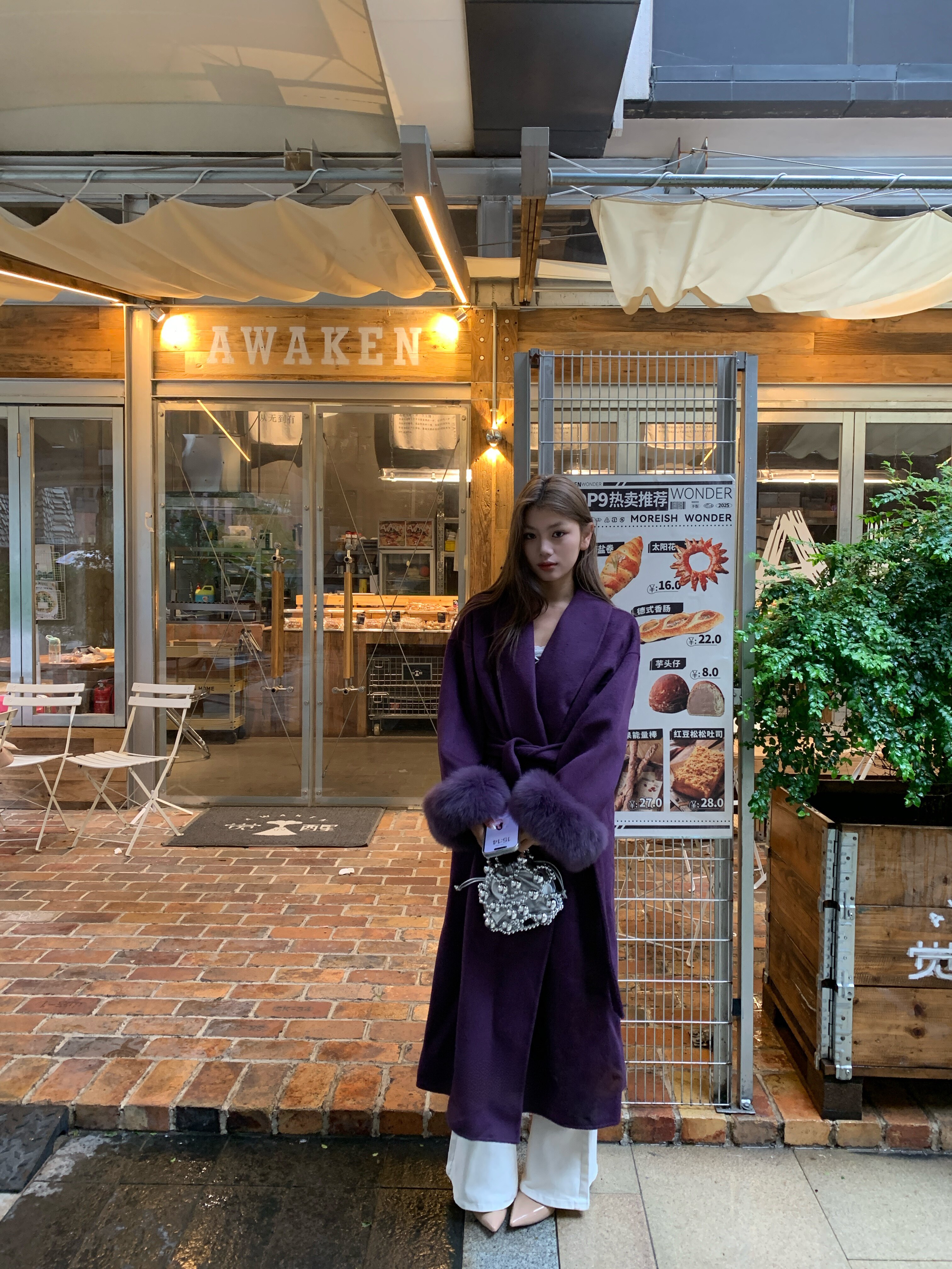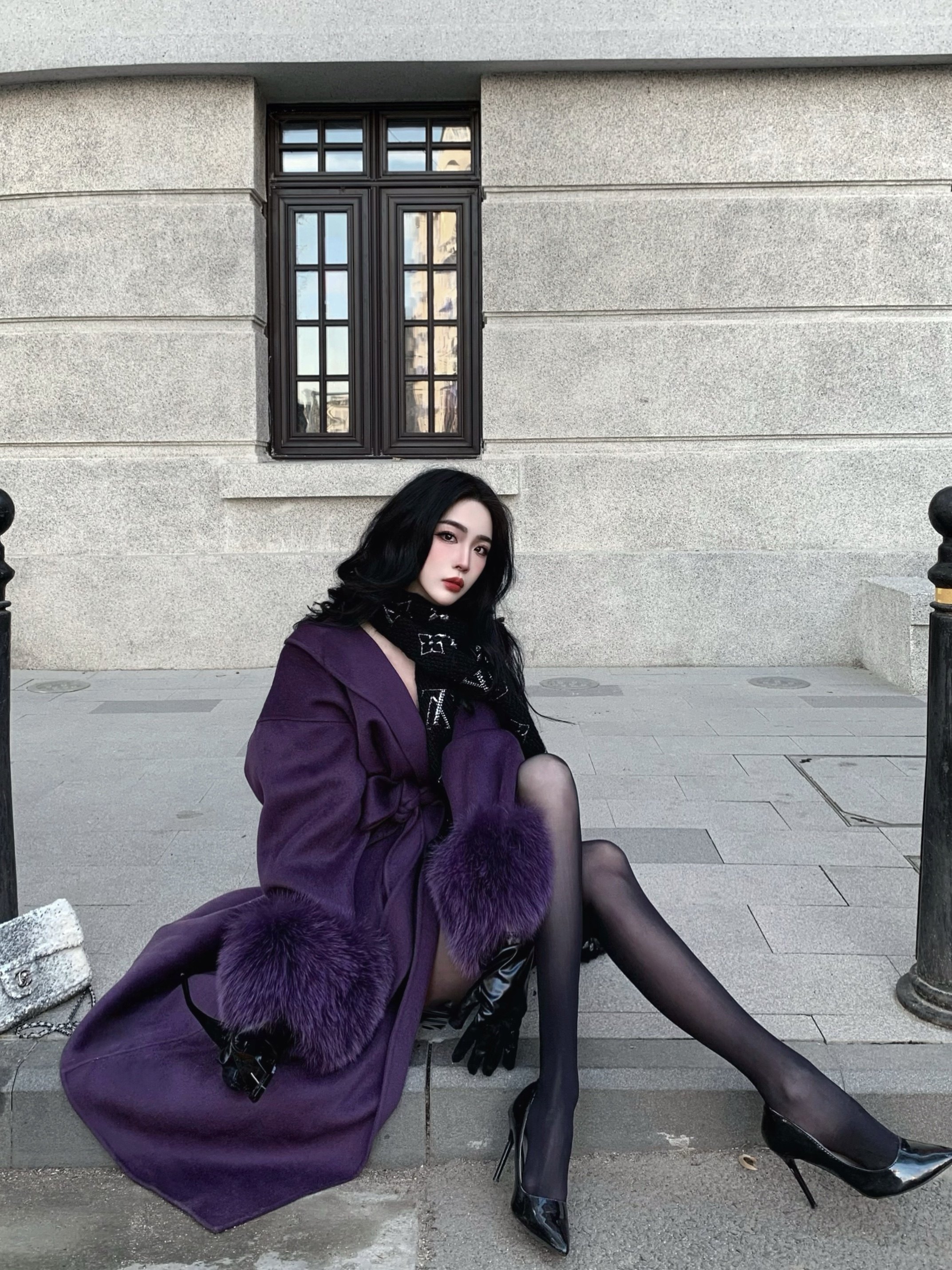 这件紫大衣质感绝了!毛袖显贵气,上身温柔又高级。