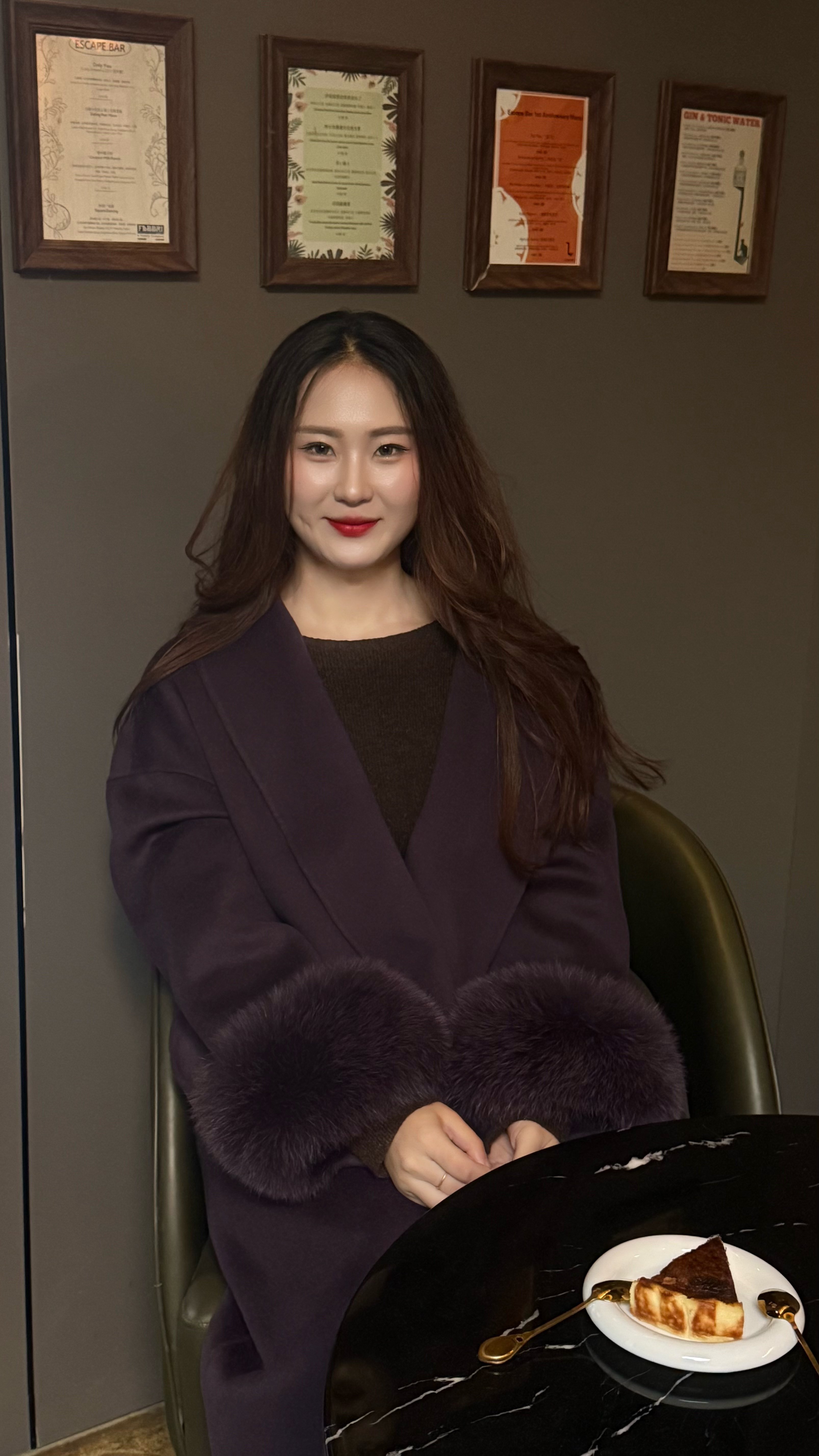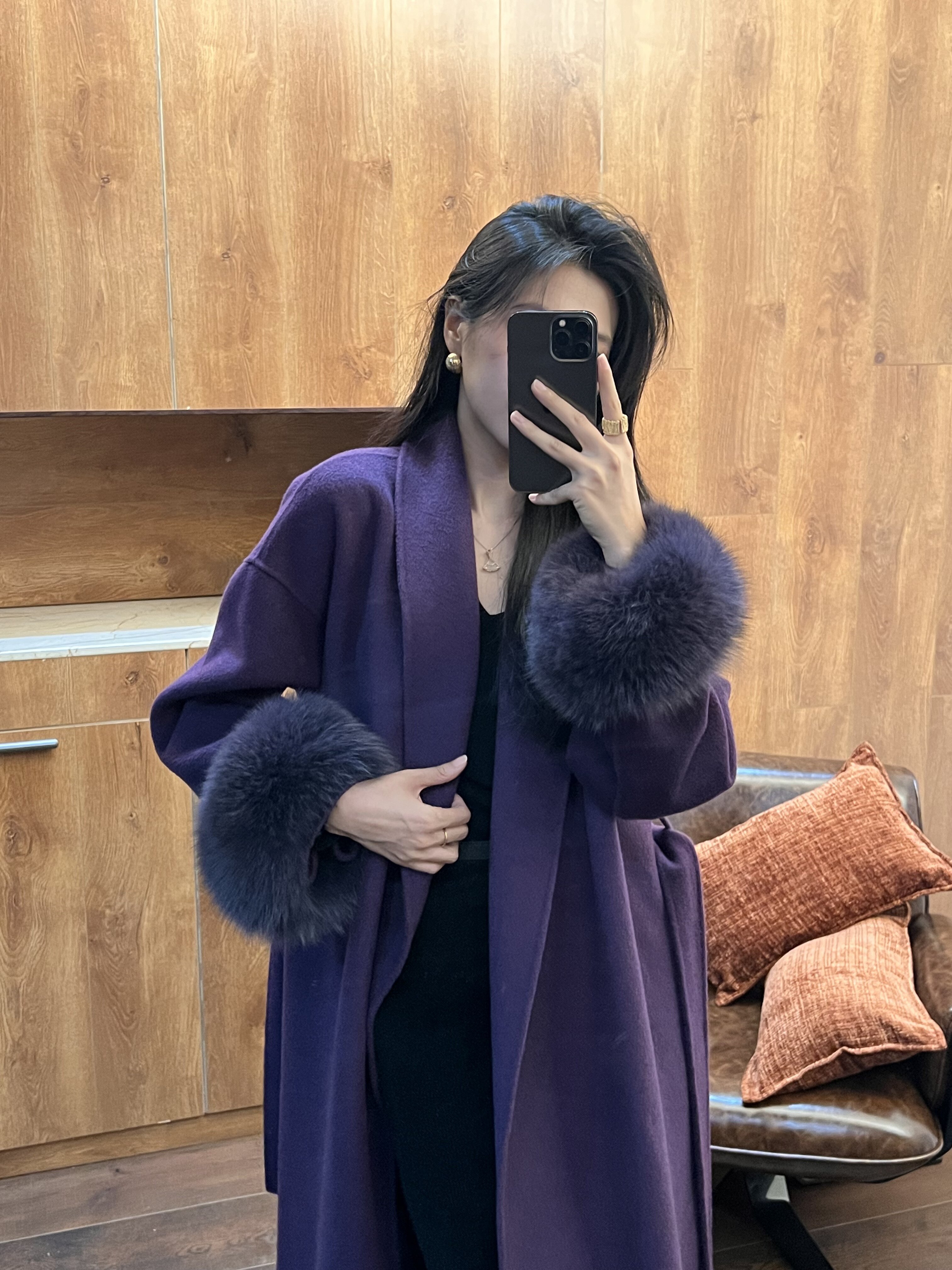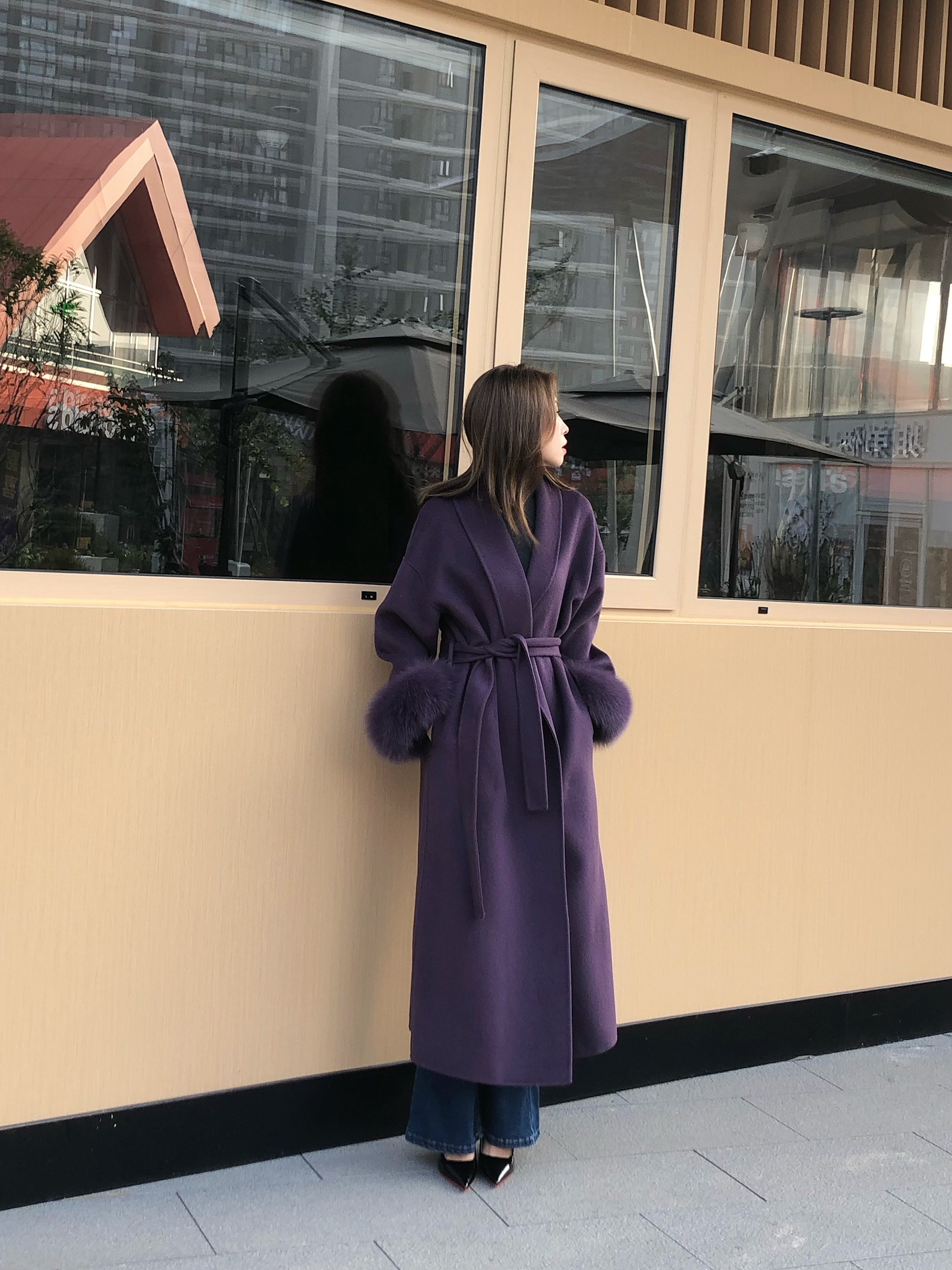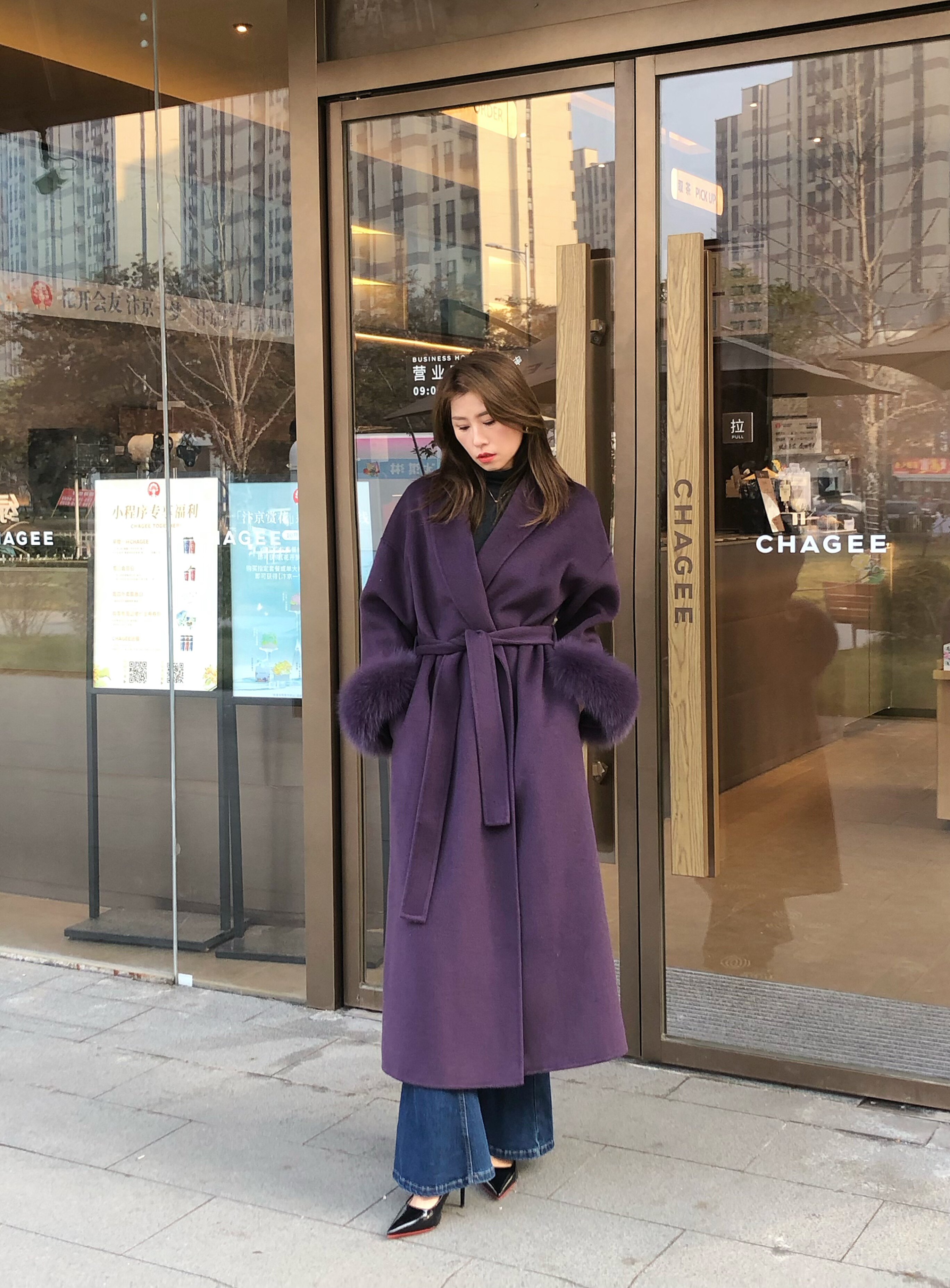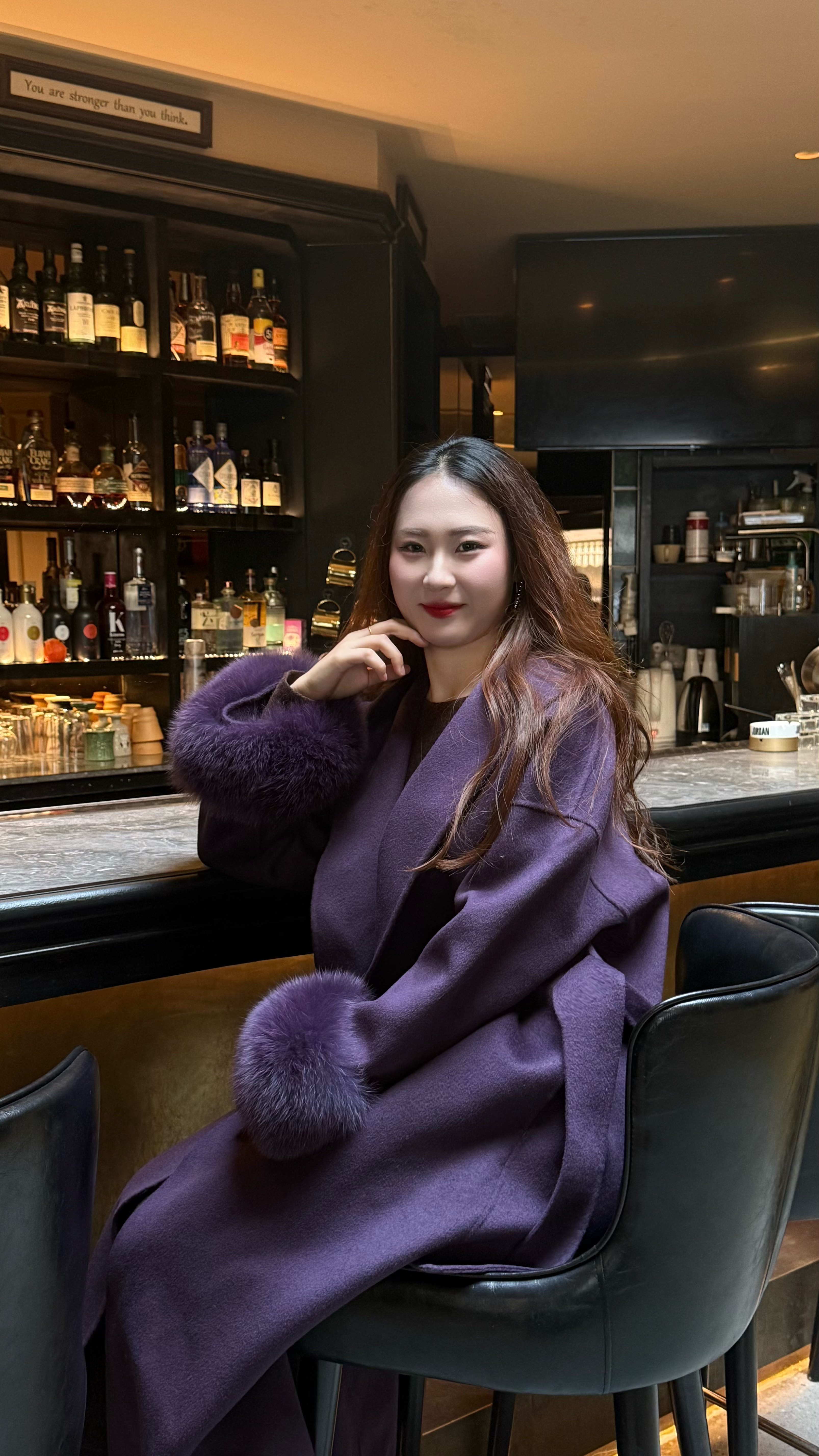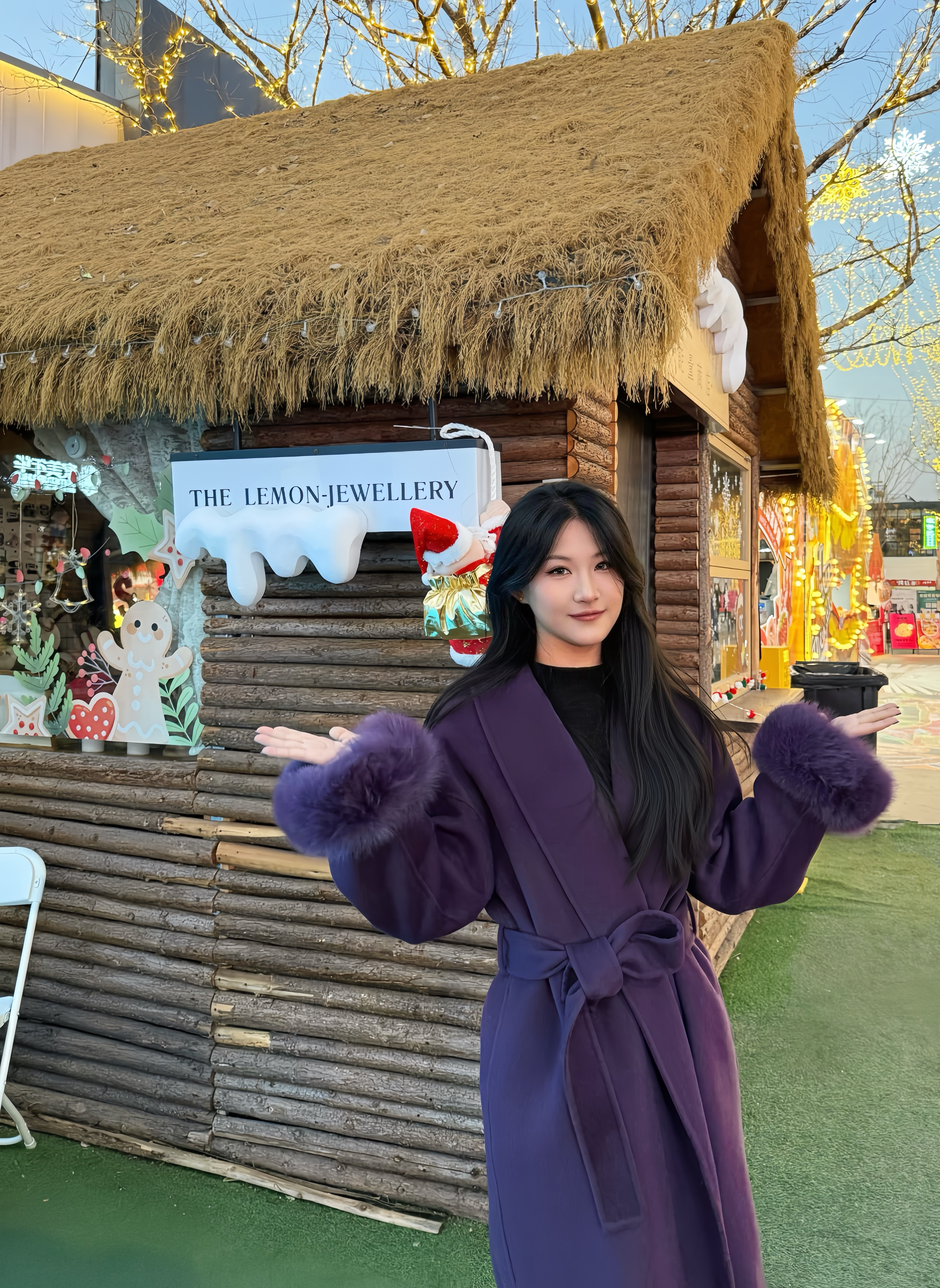 这件紫大衣质感绝了!毛袖显贵气,上身温柔又高级。