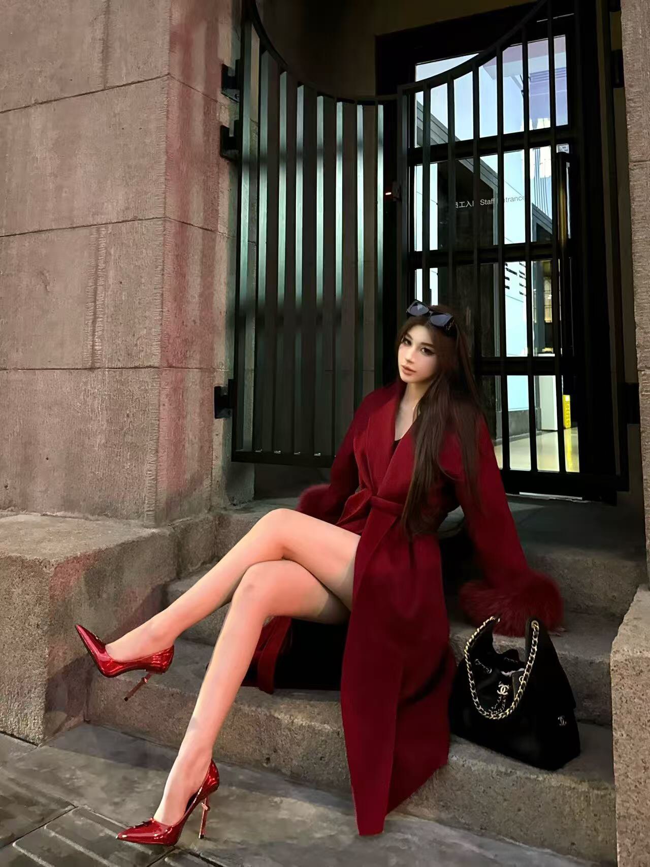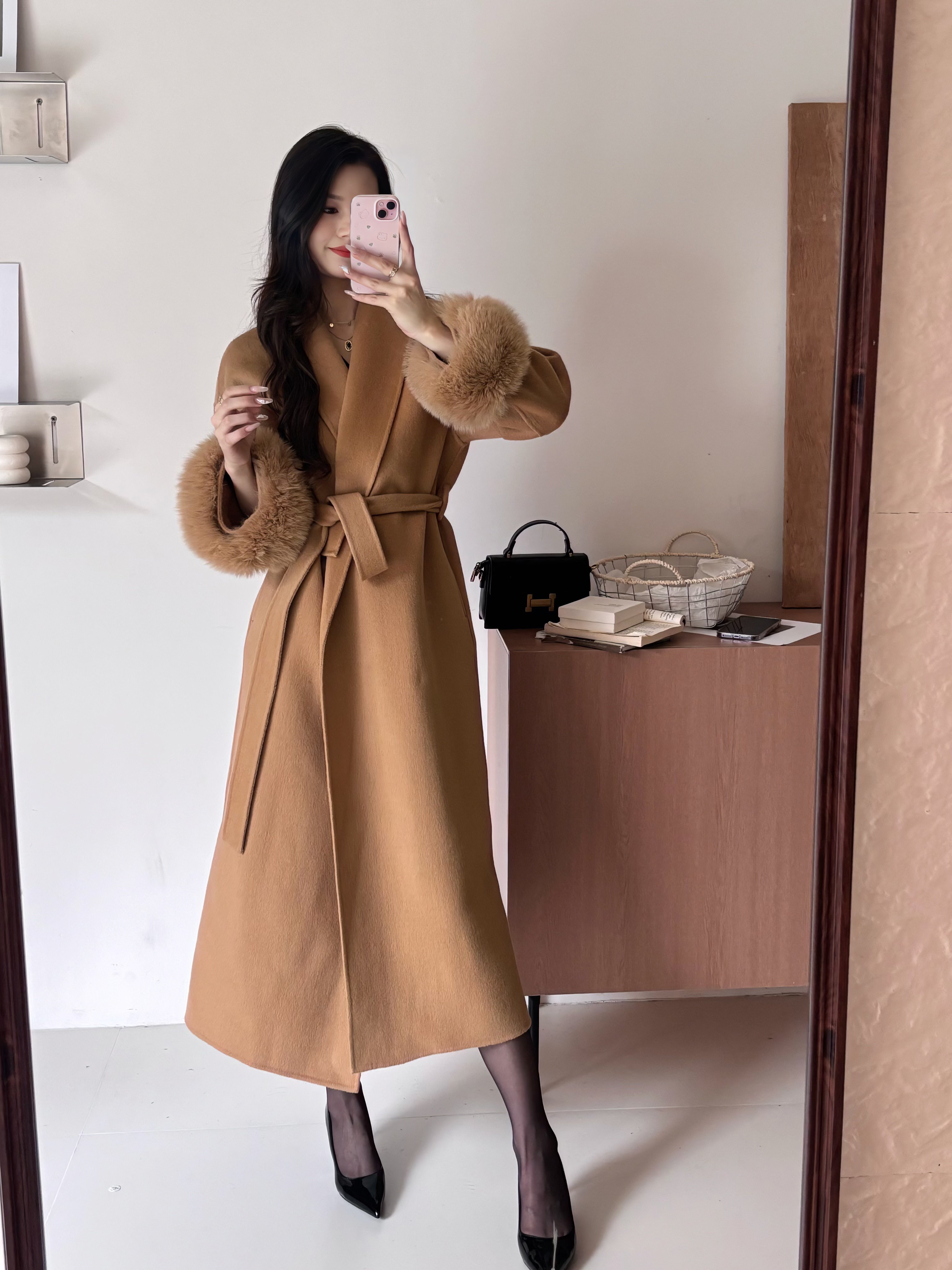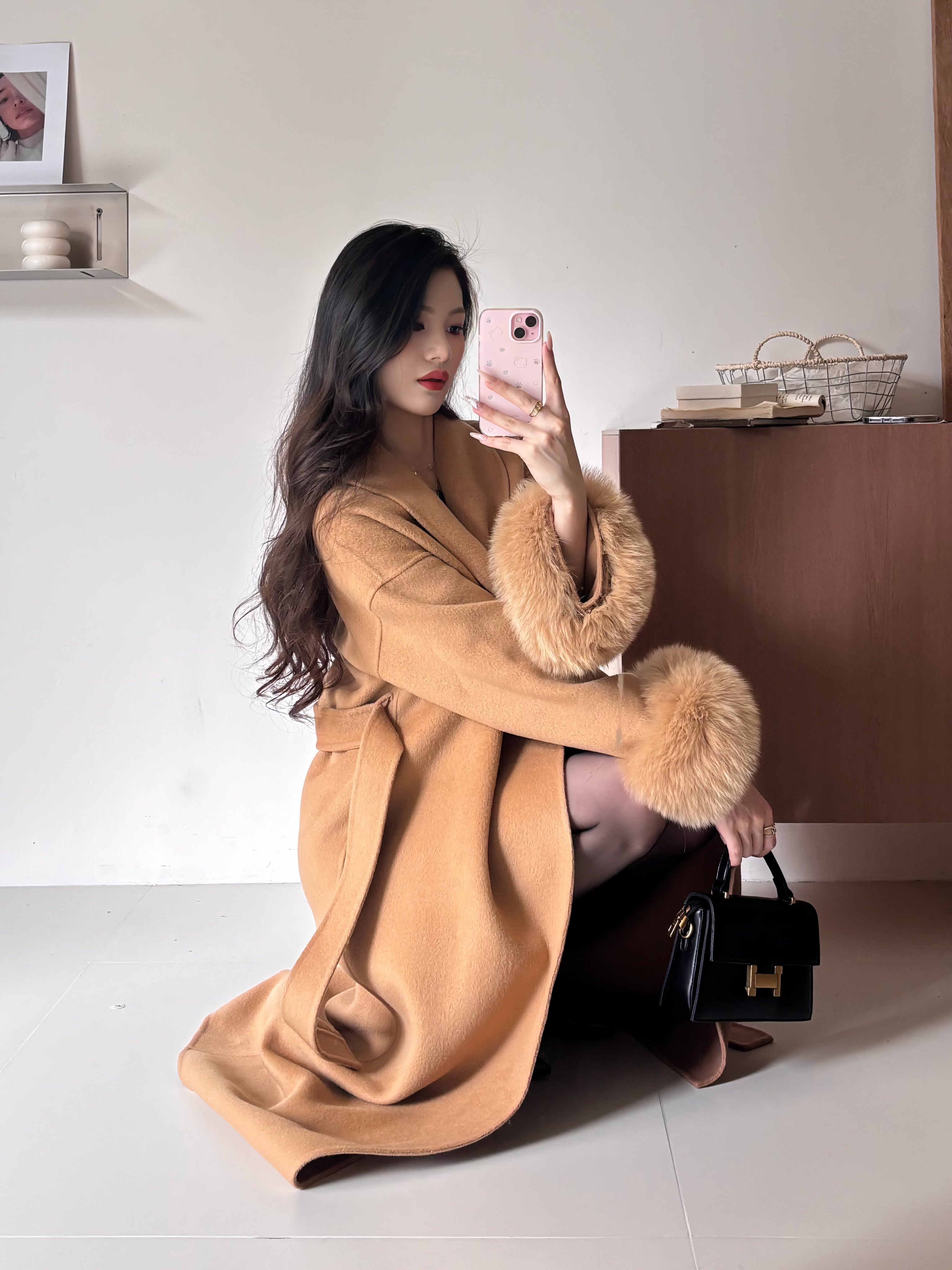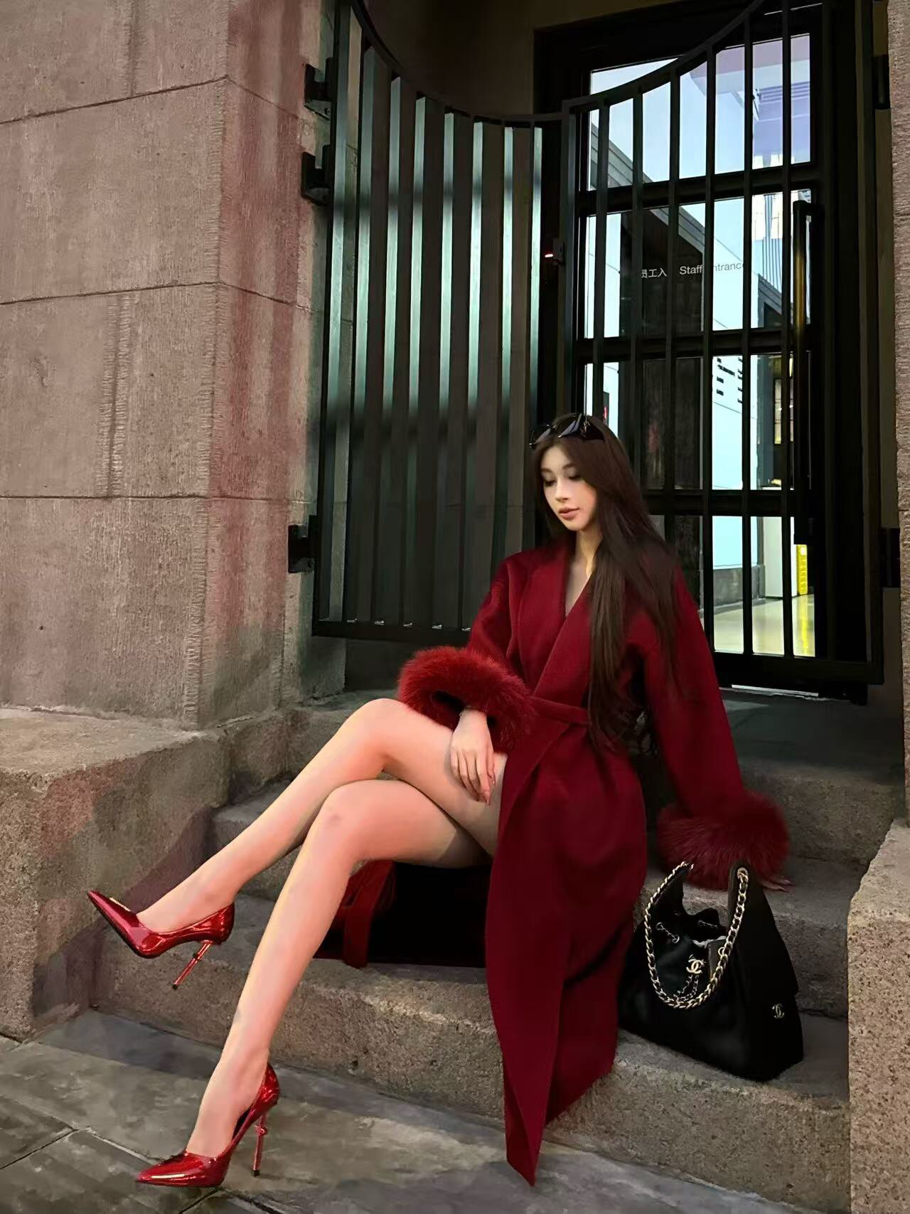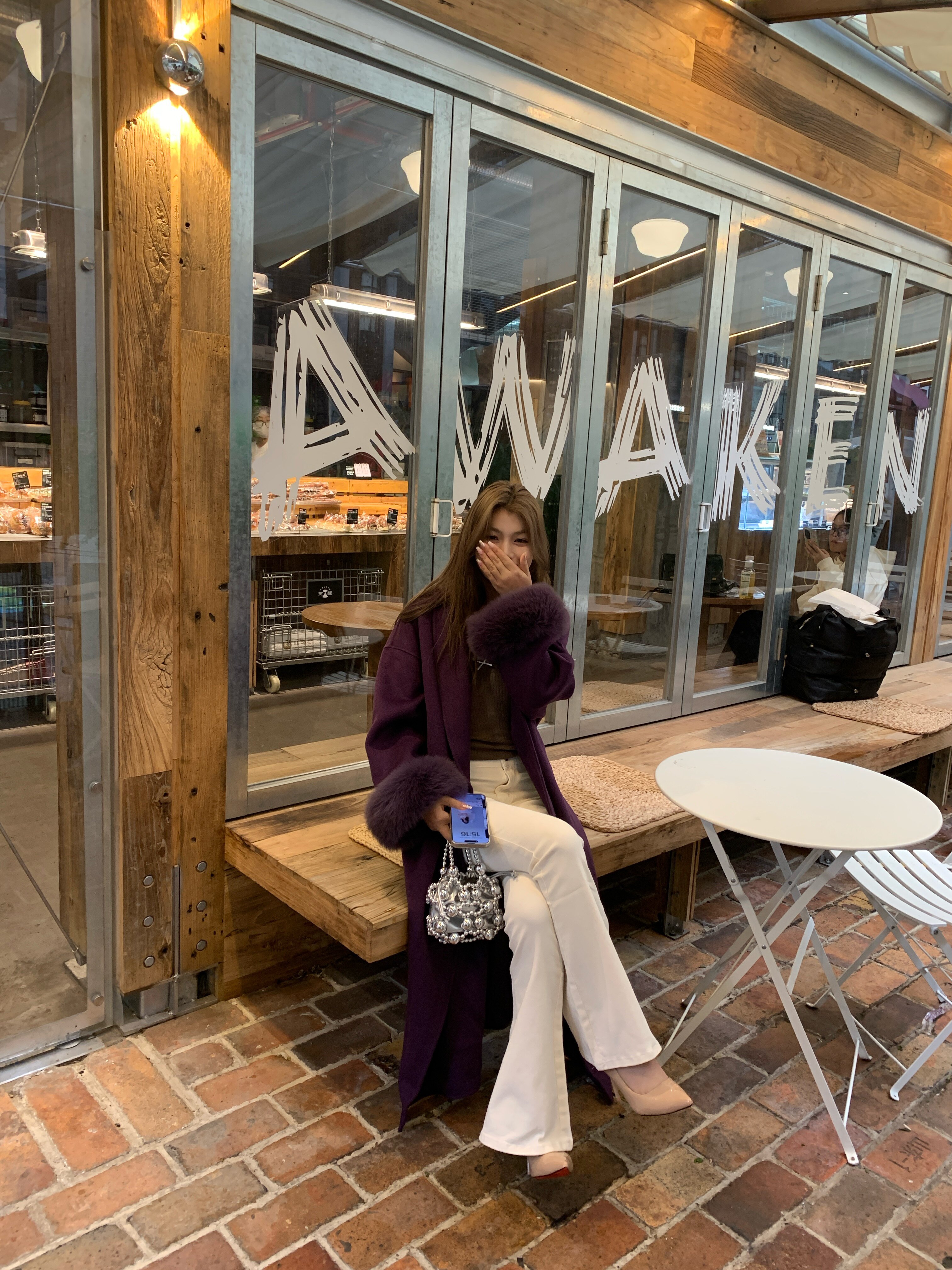 这件紫大衣质感绝了!毛袖显贵气,上身温柔又高级。
