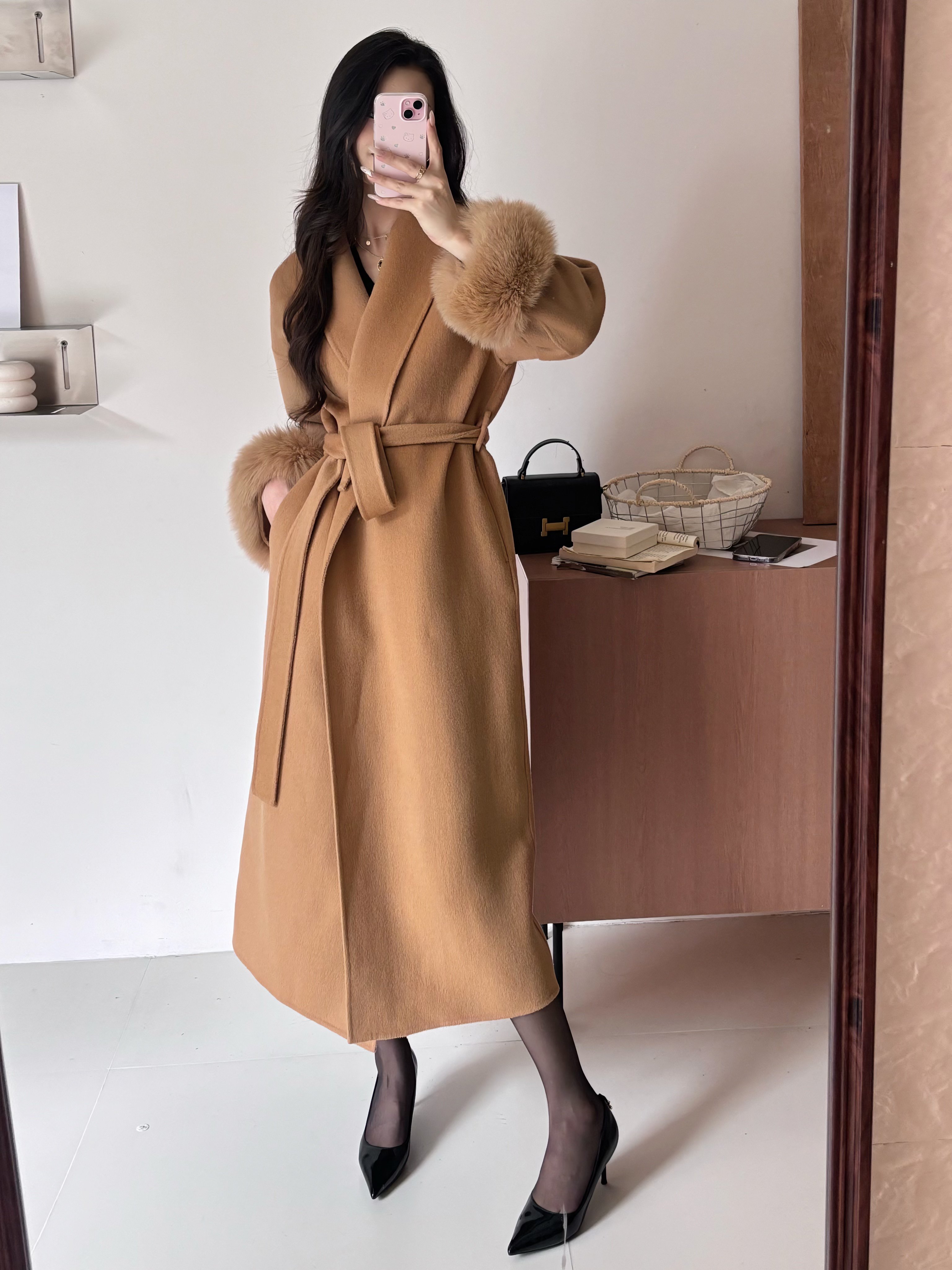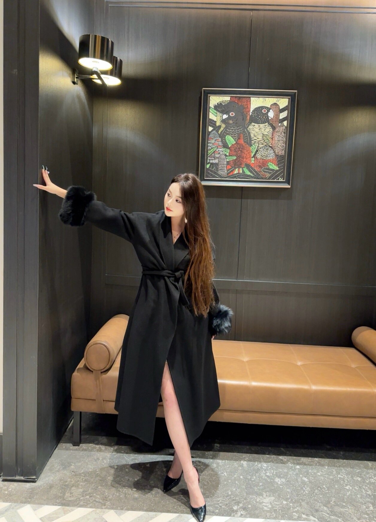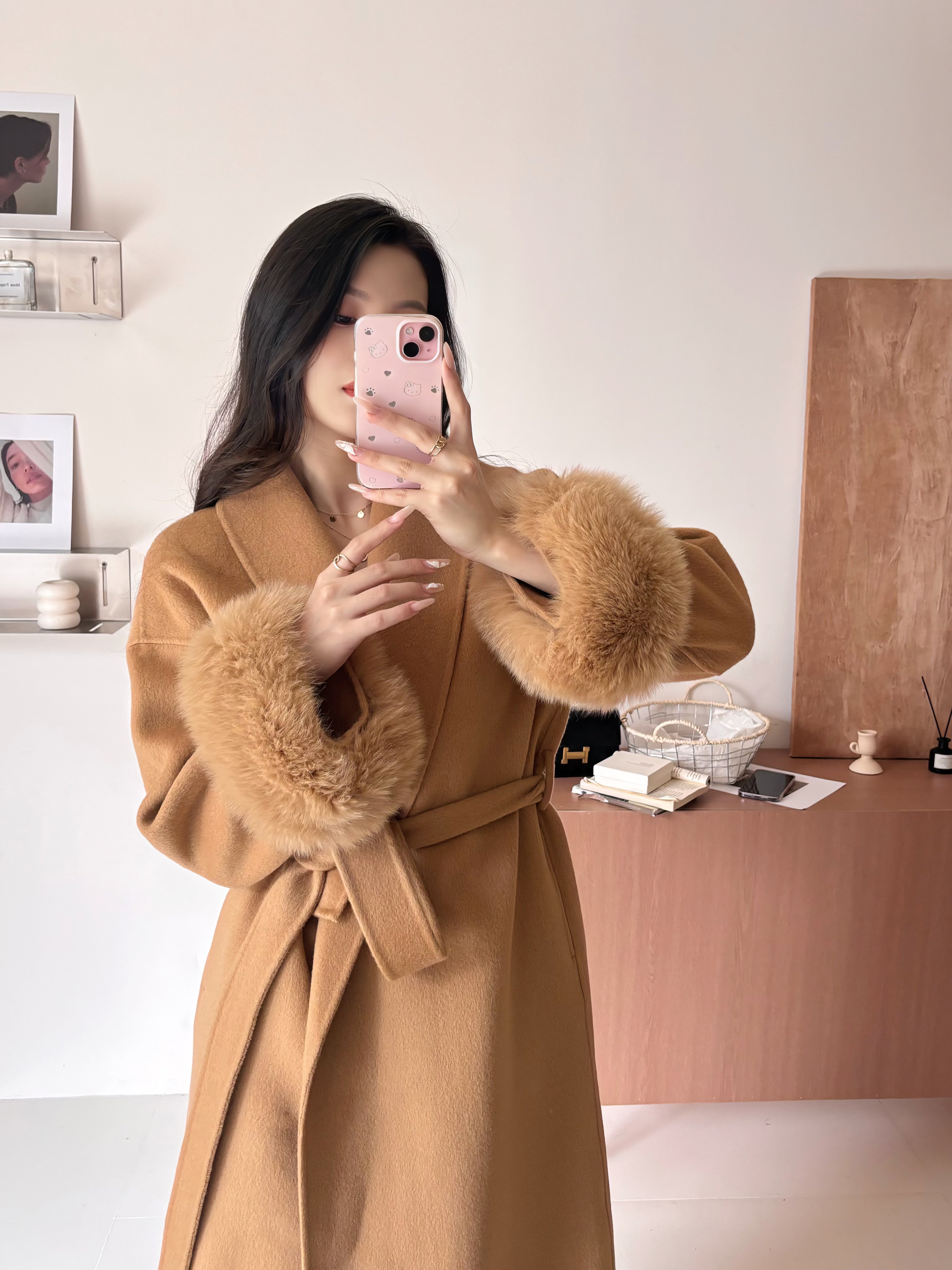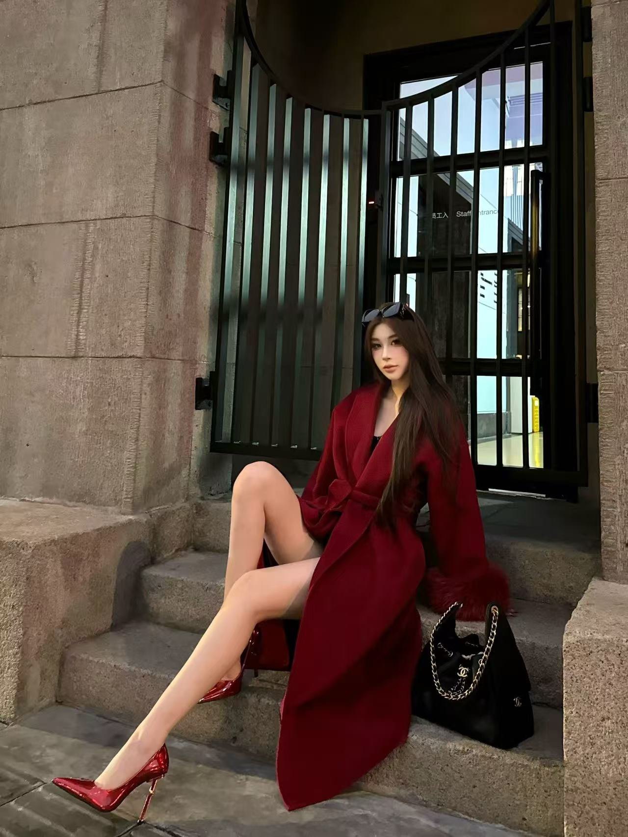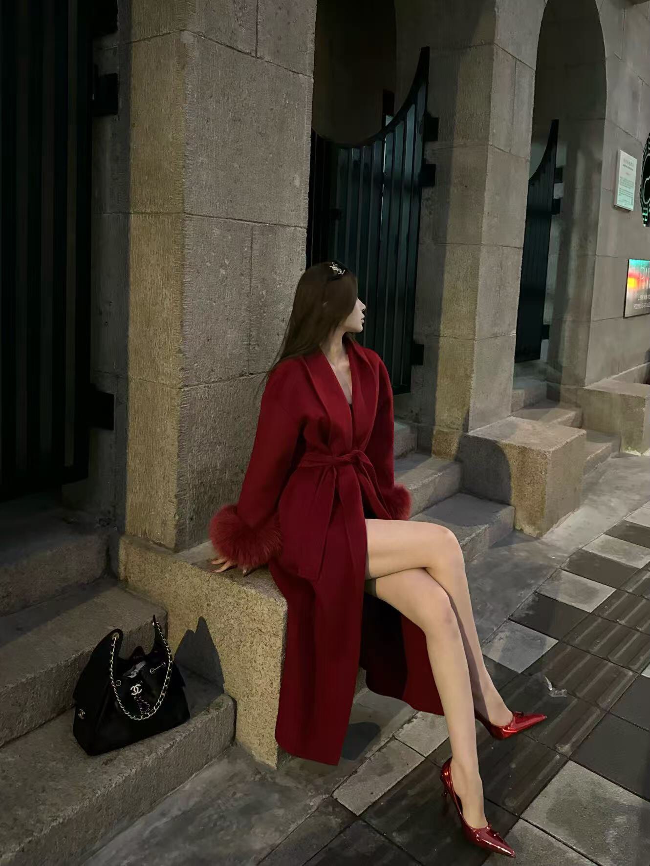 这件紫大衣质感绝了!毛袖显贵气,上身温柔又高级。