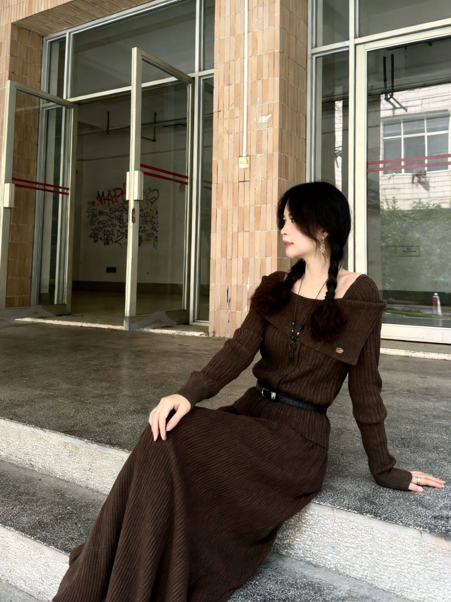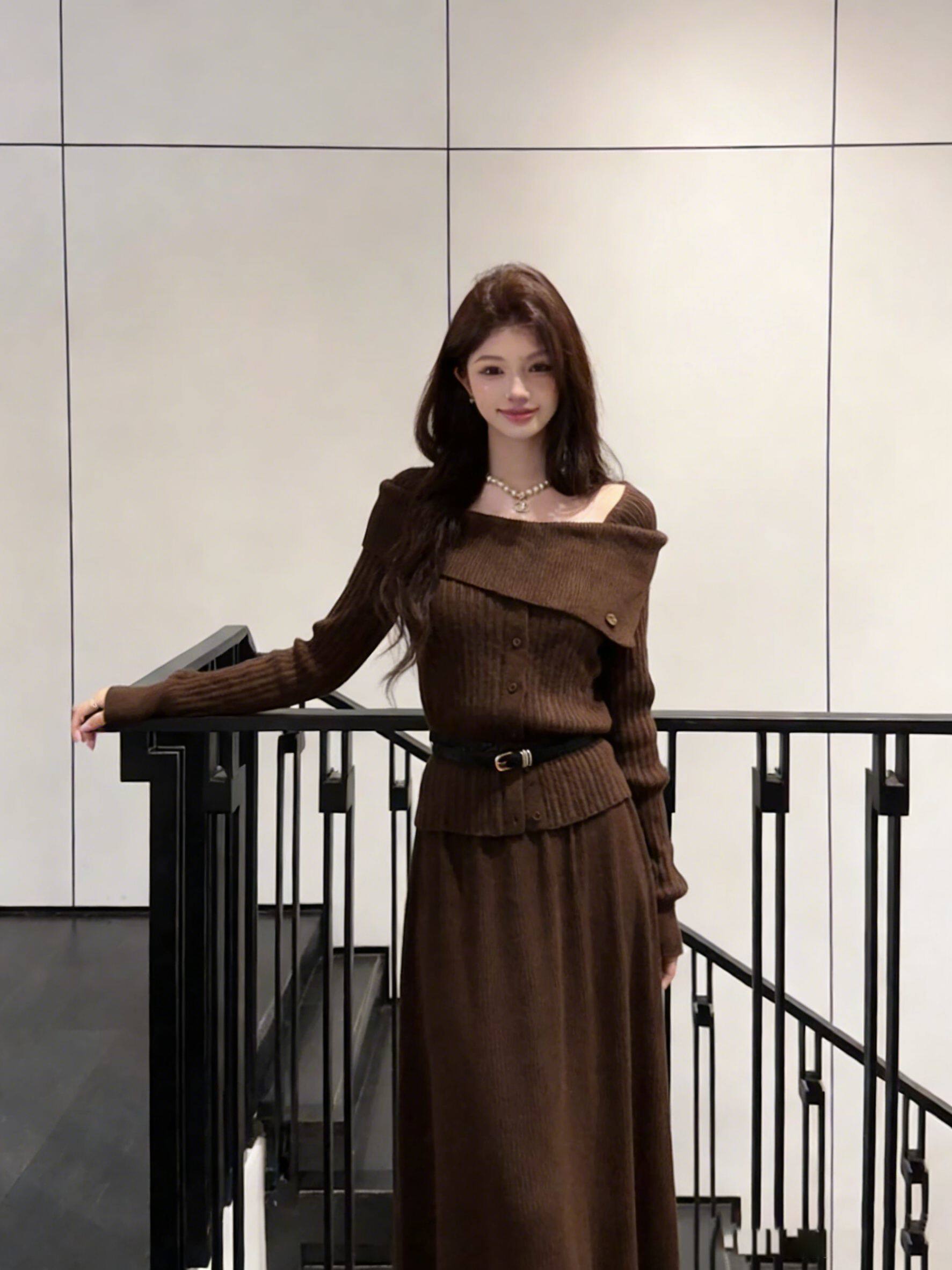 鹿向南「可可糖果」美拉德套装,秋季氛围感利器!深棕色针织衫+长款半身裙,自带复古温暖质感。修身剪裁贴合身形,显瘦不臃肿,面料亲肤舒适。日常通勤、约会逛街都适配,无需费心搭配,轻松拿捏温柔优雅的美拉德风,是颜值与实穿兼备的秋日必备套装~