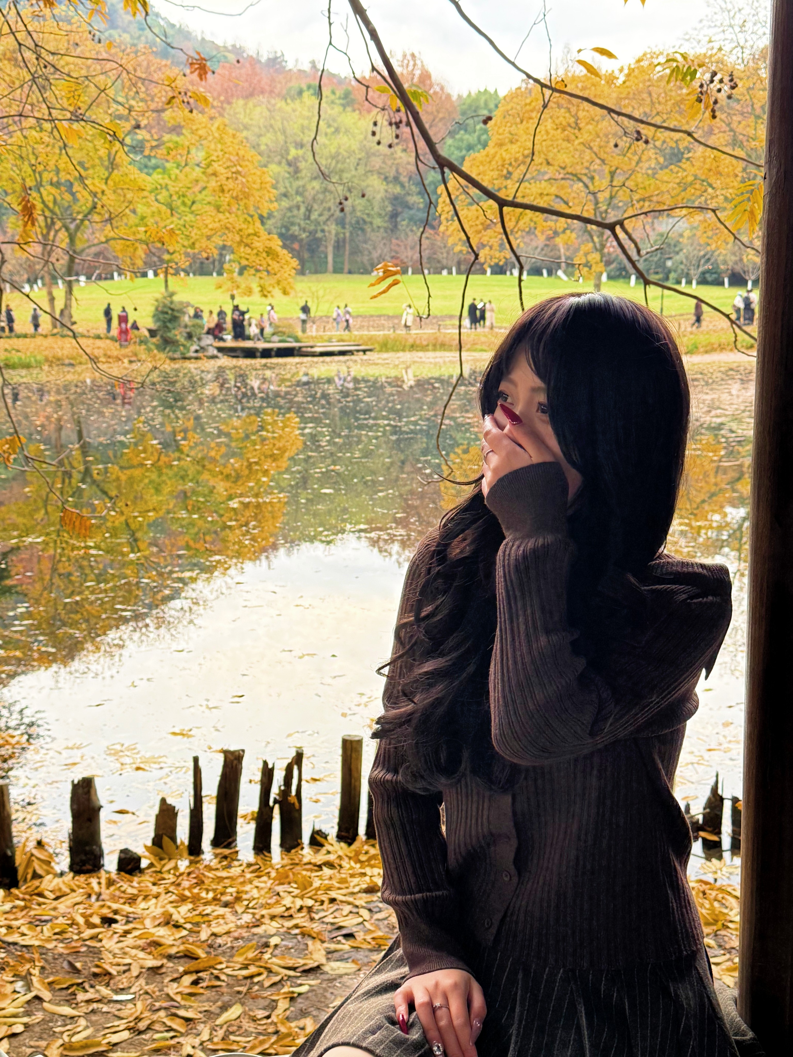 棕色的颜色非常好看,非常适合深秋穿,现在这个温度穿刚刚好,很有设计感