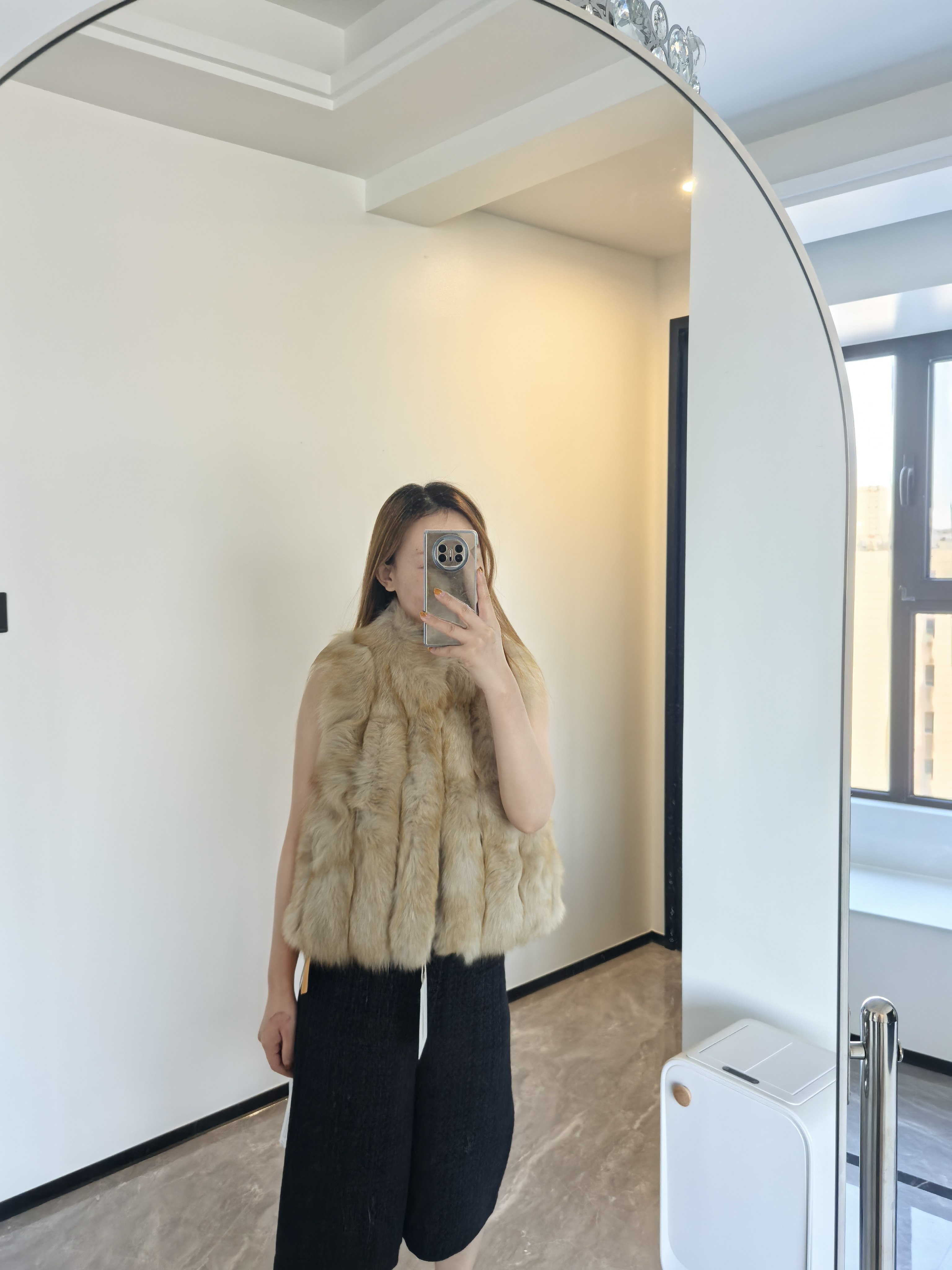 超级好看!穿上非常非常贵气,皮草很柔软,杭州的冬天这样穿也很暖和,完全不冷,就是太容易飞毛了。
