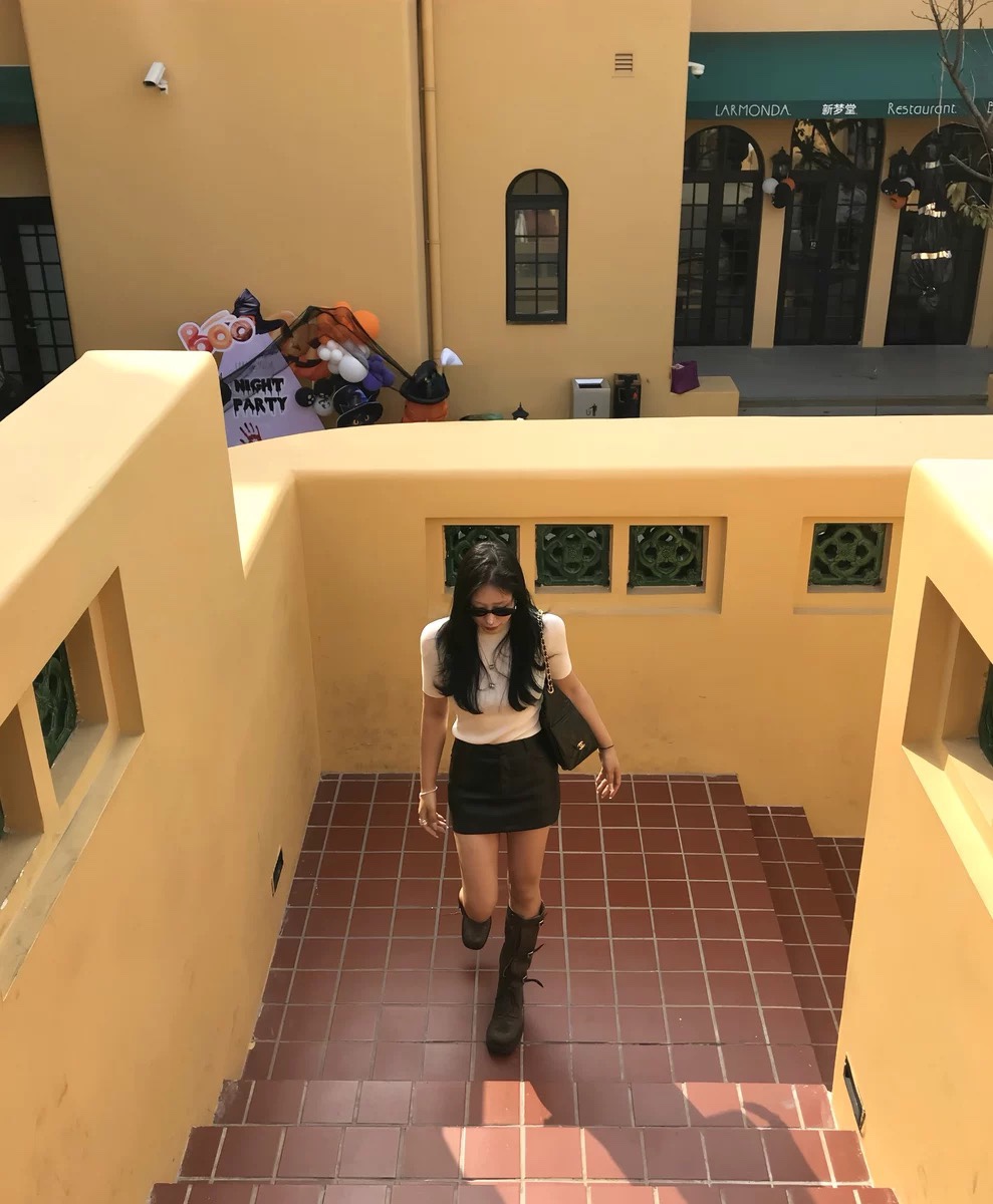 配了一套 裙子皮质好 版型也好看 黑色有气质