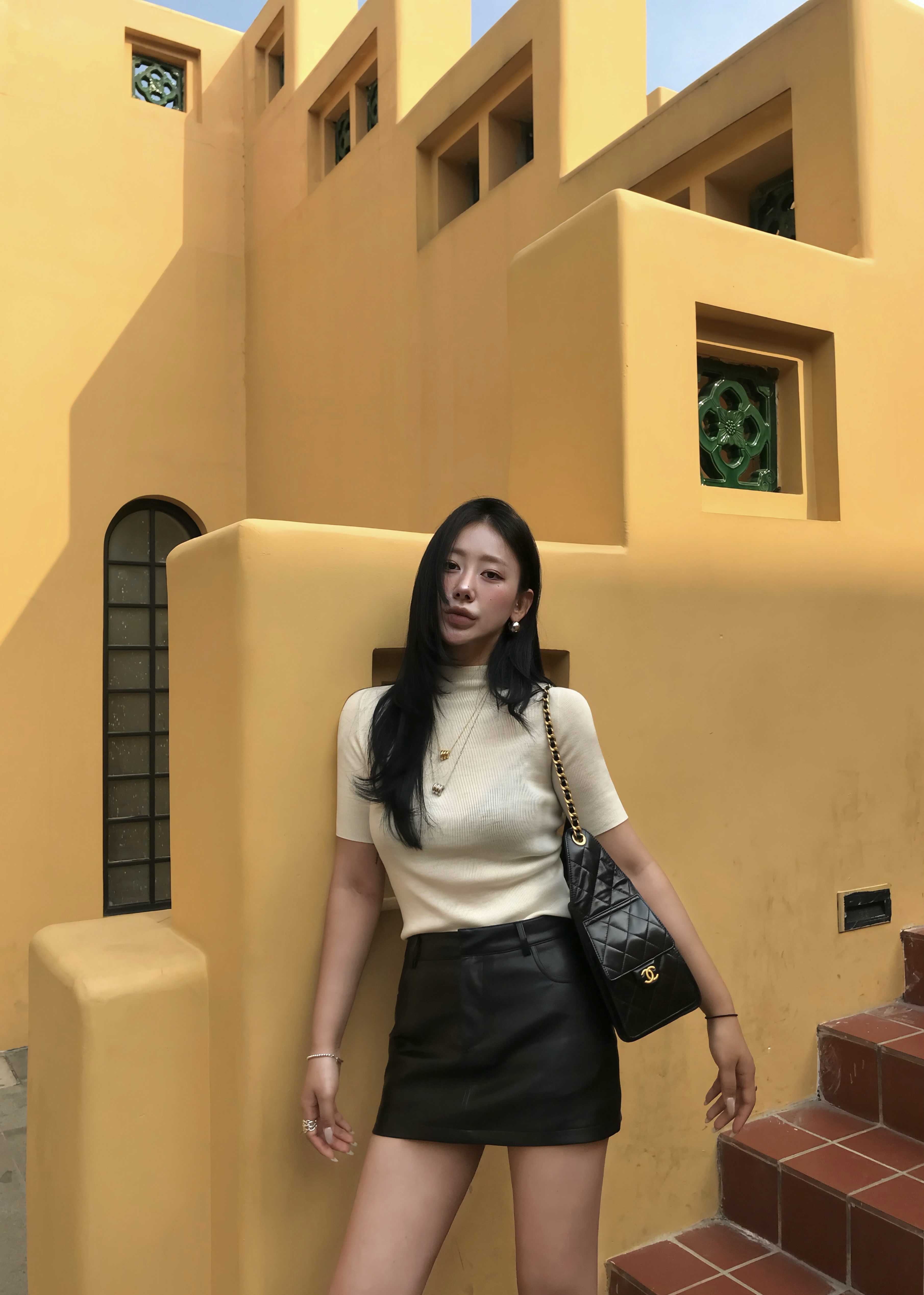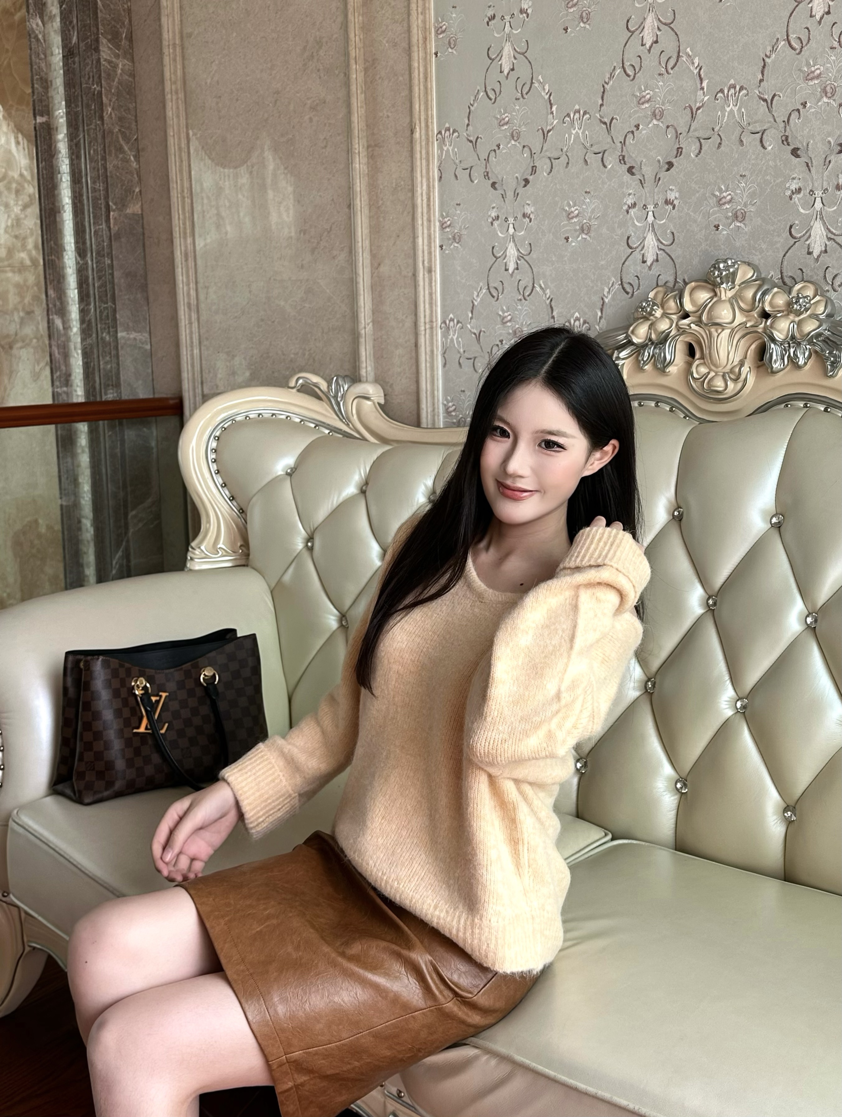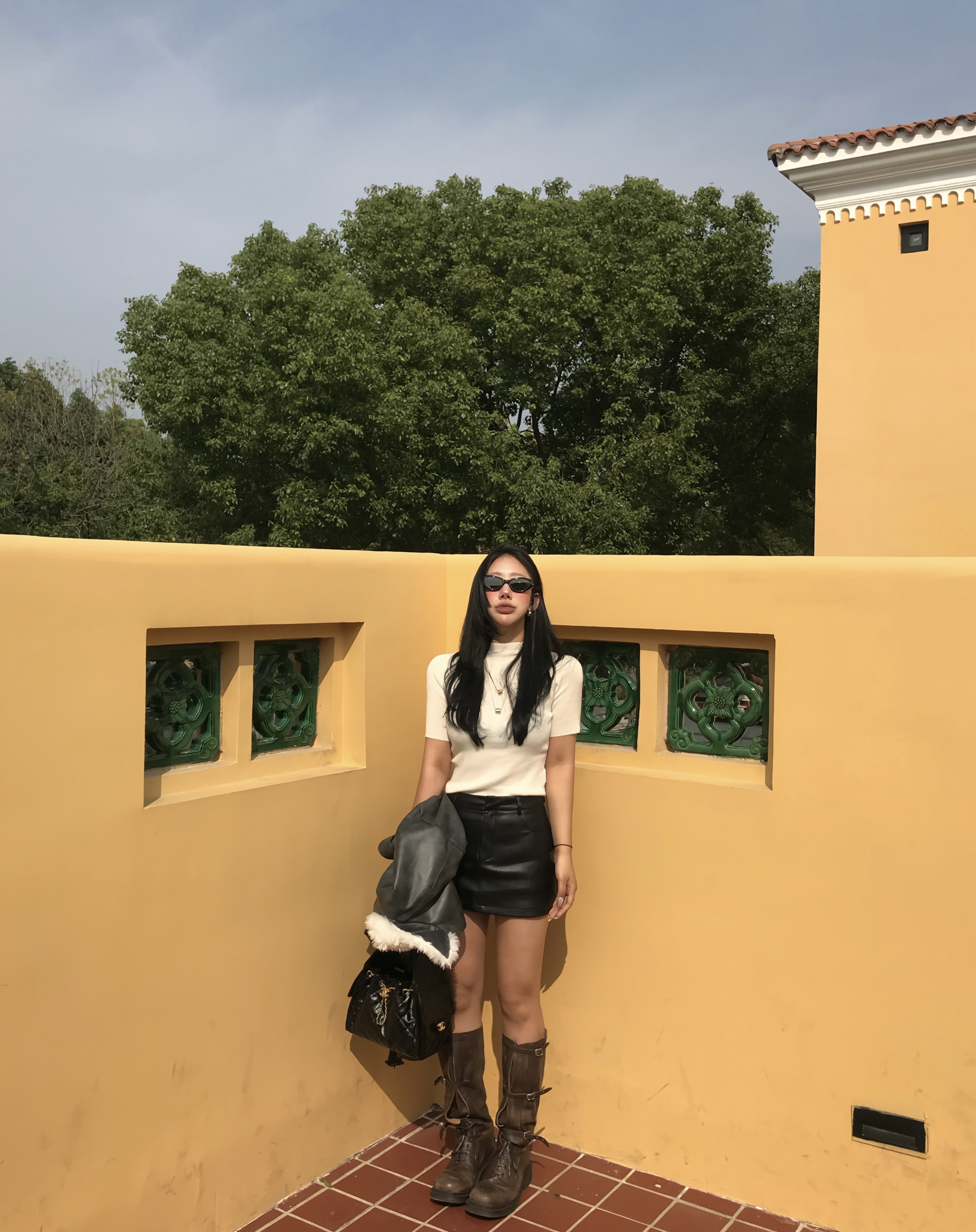 皮裙质感高级,包臀版型超A,后开叉设计小性感,一套搭配姐感味十足!