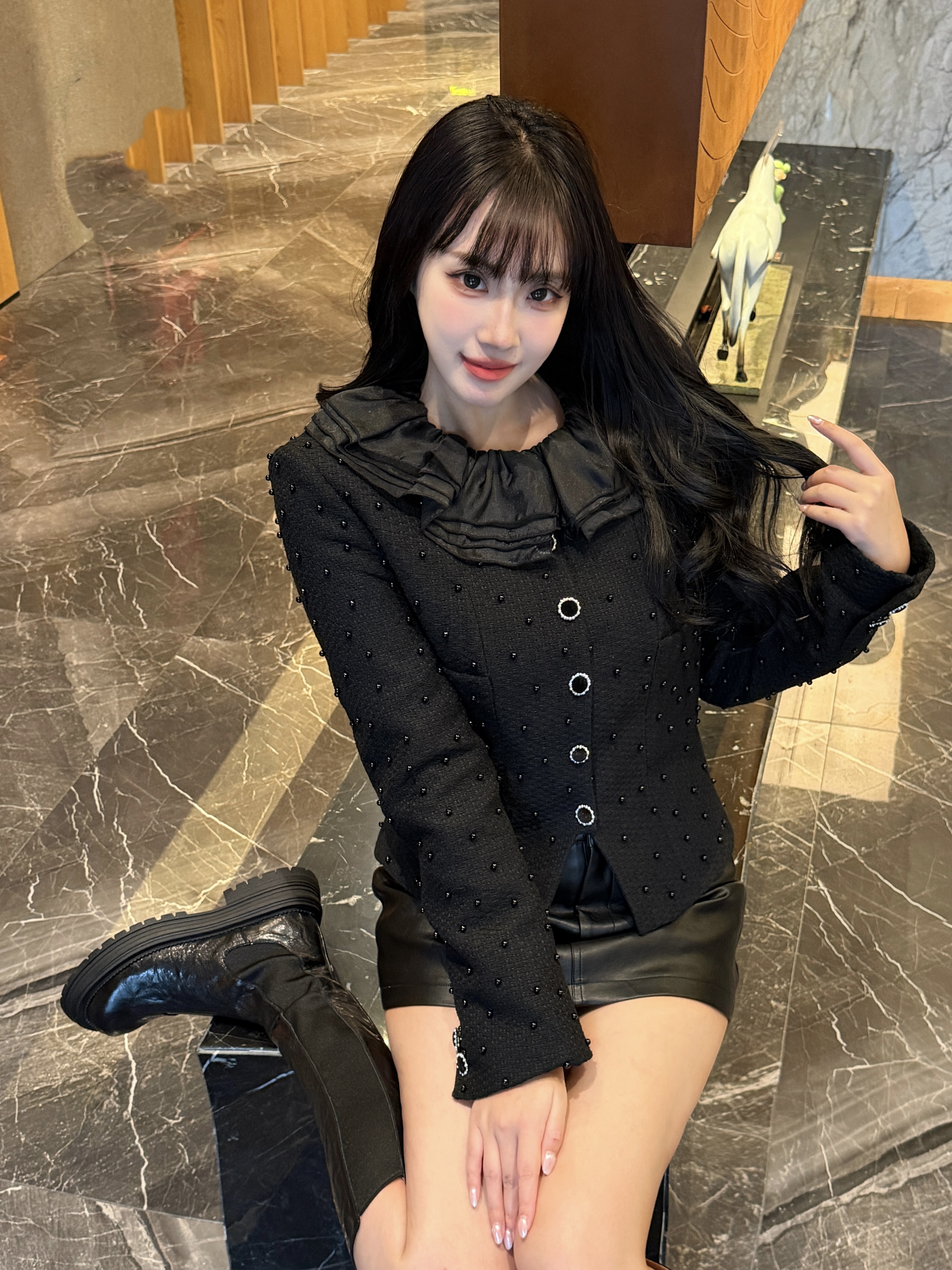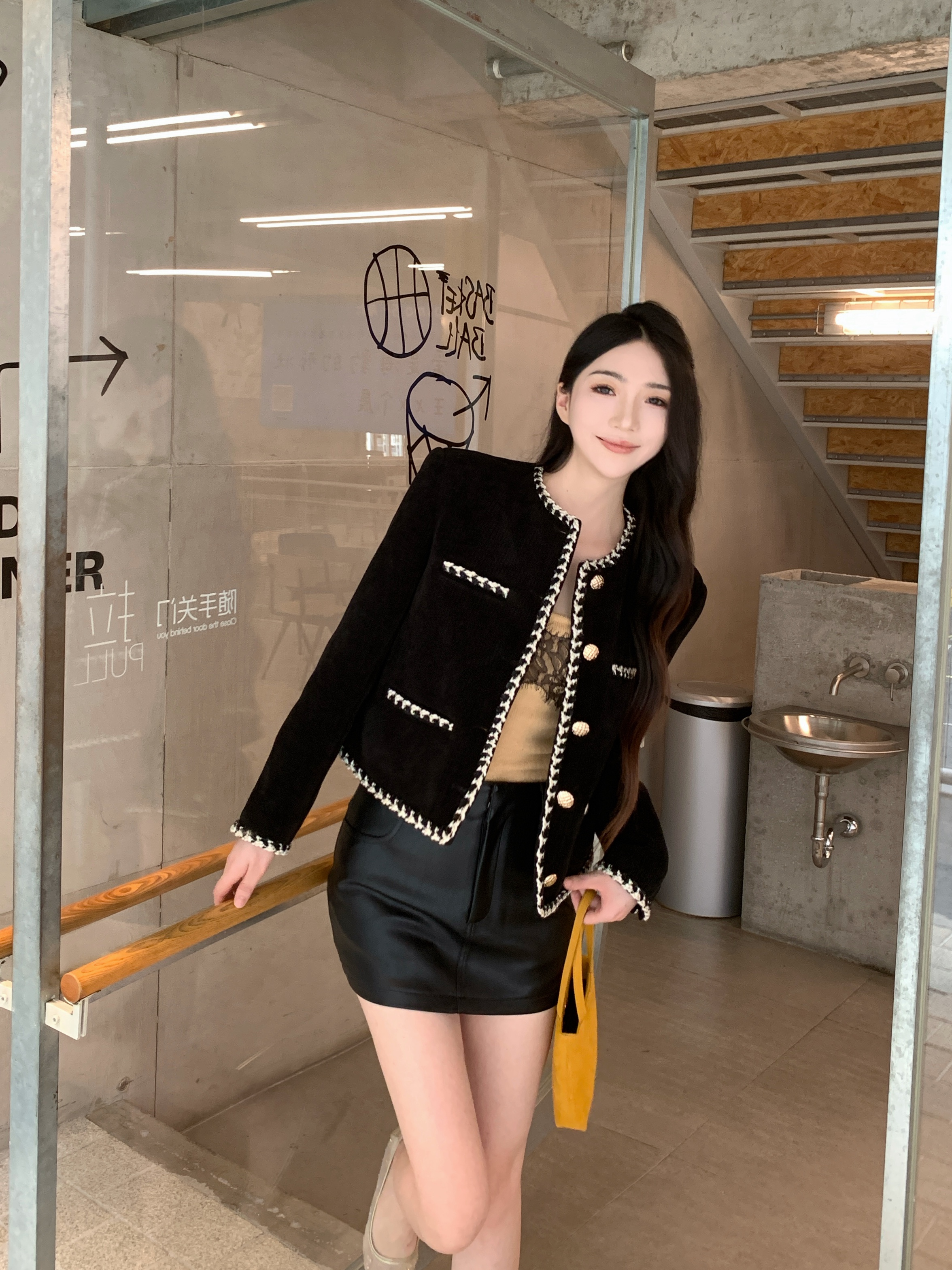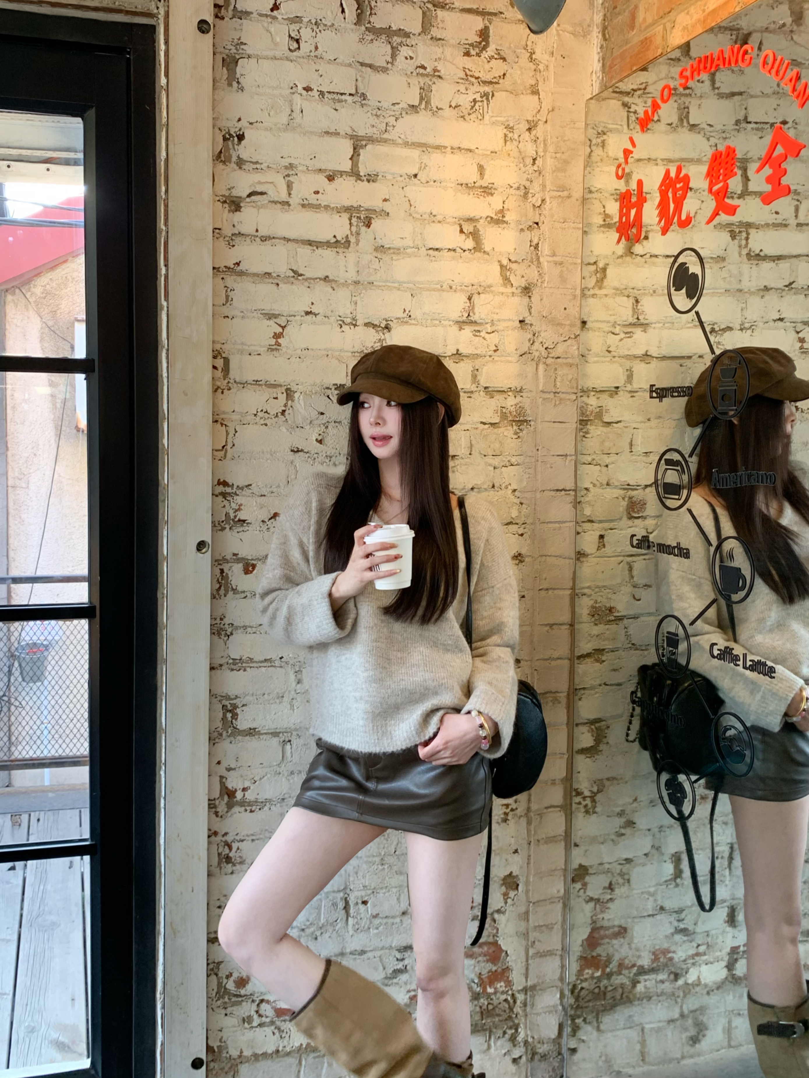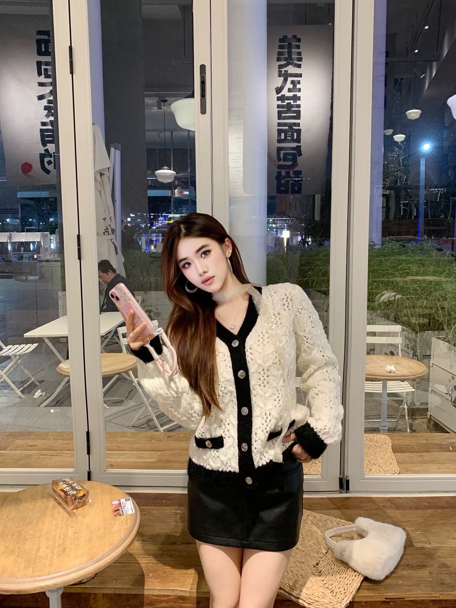 皮裙质感高级,包臀版型超A,后开叉设计小性感,一套搭配姐感味十足!