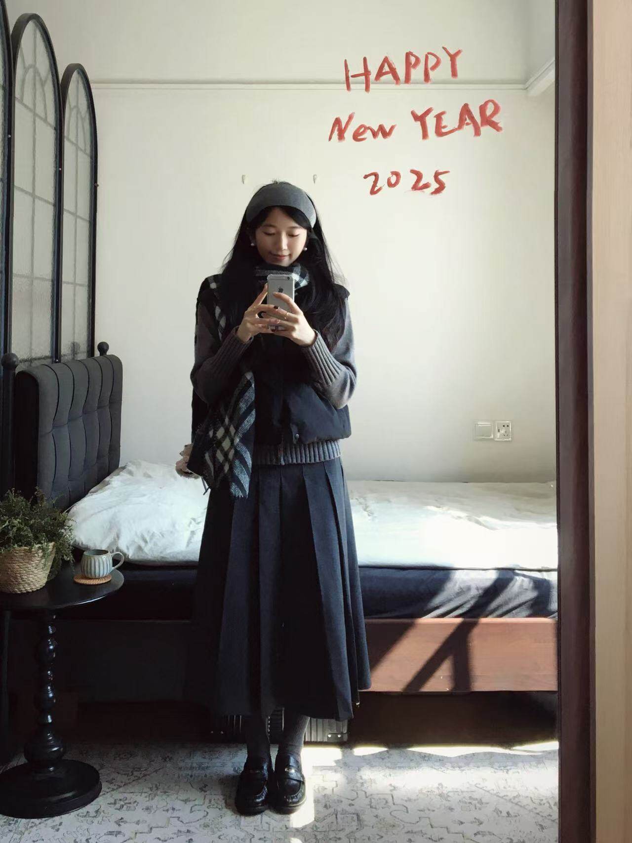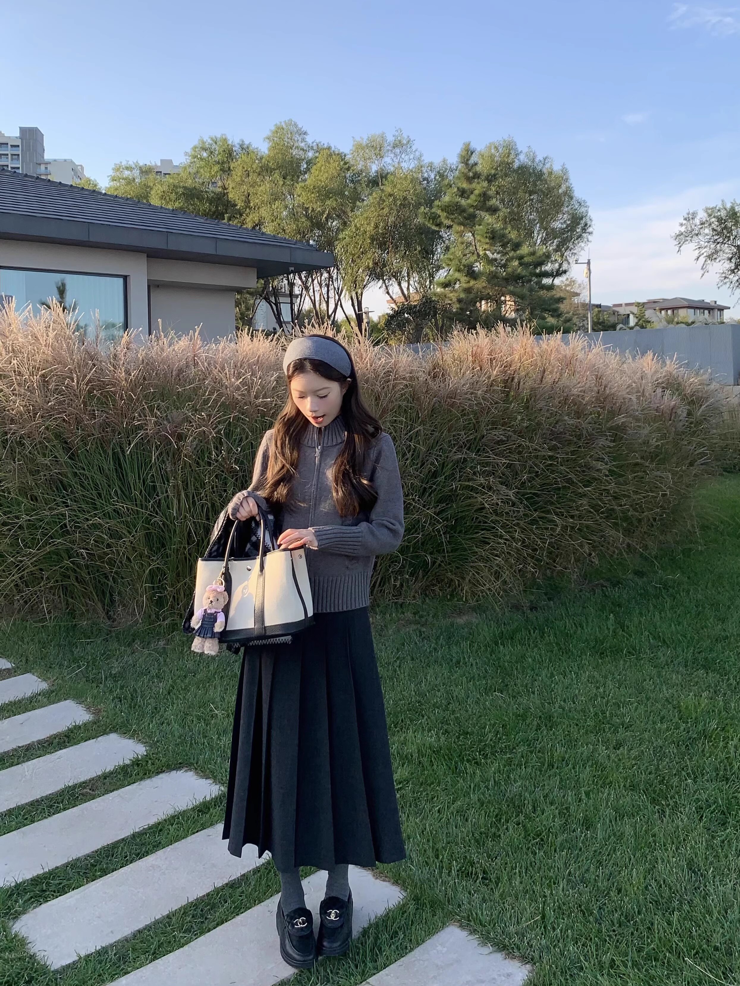 Halonini 圣马丁学院风高智灰百褶长裙,高级深灰自带冷静知性气场,高腰剪裁瞬间拉高腰线,优化三七分比例,对小个子、梨形身材超友好。细密定型百褶垂坠有型不易散褶,行走间灵动飘逸,显瘦又藏肉。百搭属性拉满,可配针织衫、西装、大衣等,通勤、上课、约会、看展等多种场景轻松驾驭,简约却不单调,是打造韩系高智感穿搭的必备气质单品。