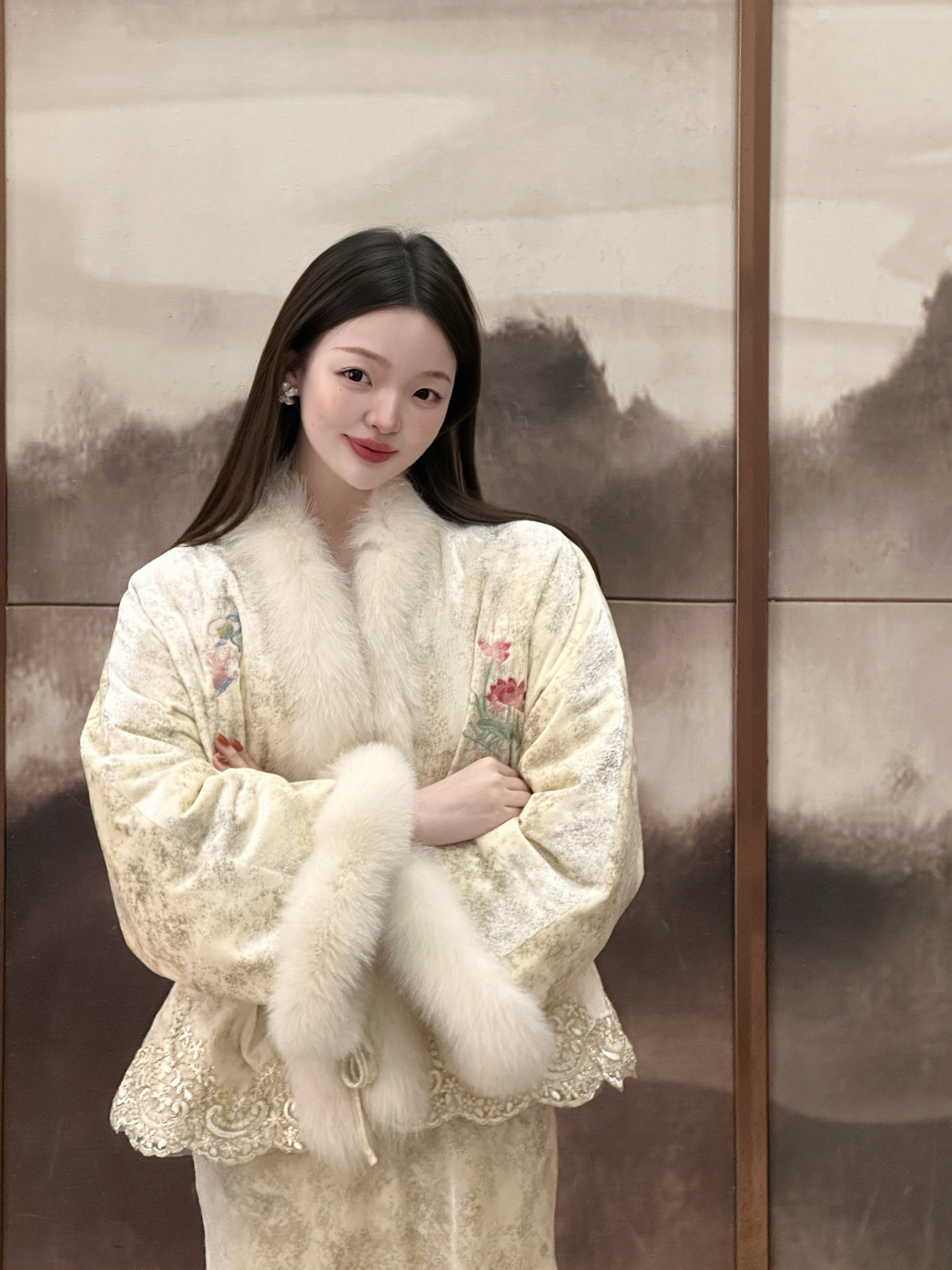 https://item.taobao.com/item.htm?id=989295535794保暖效果:第一次尝试新中式的羽绒服,好好看!!毛毛手感也超好!