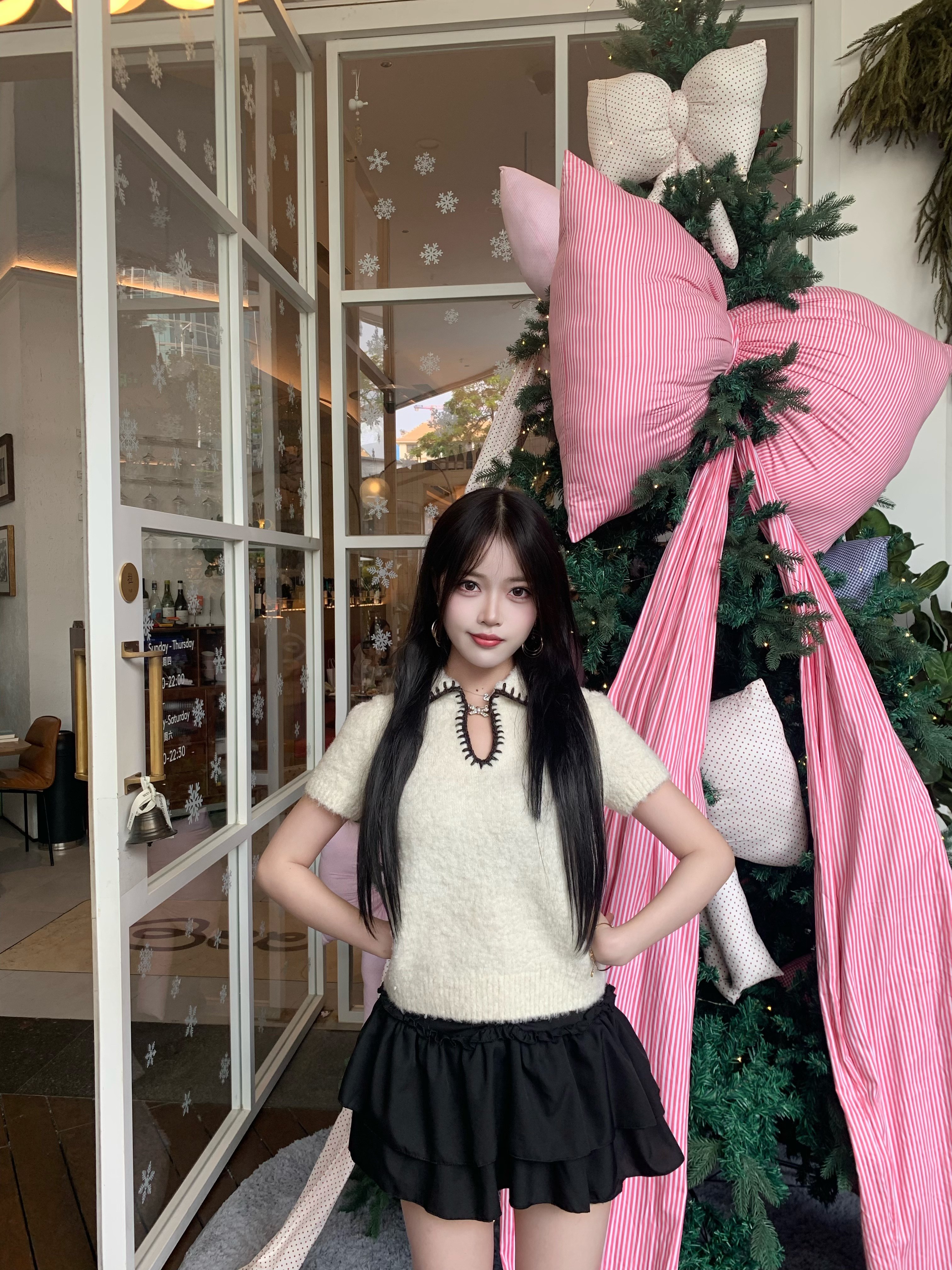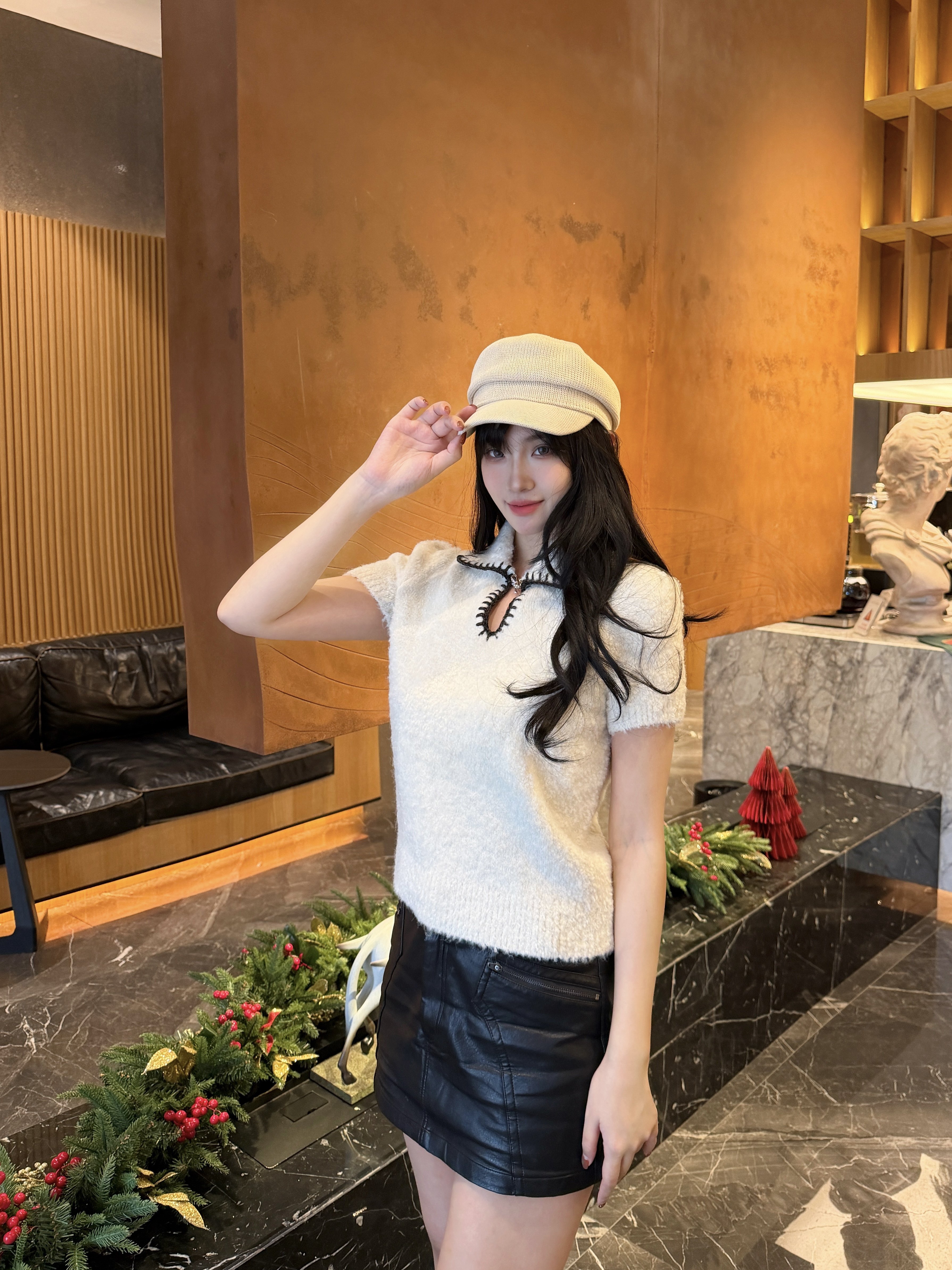 超美的针织短袖,柔软舒适,版型也很正,探店拍照超美的,千金风满满~