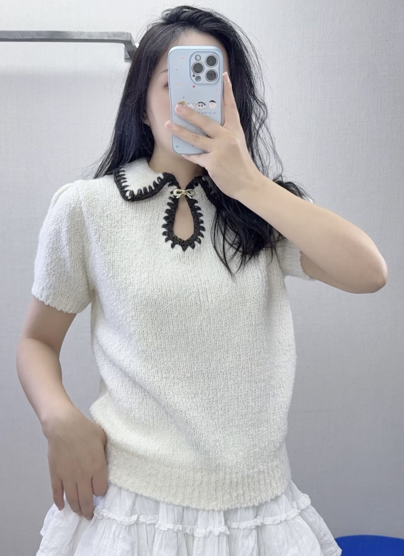 衣服穿上很显白,这个白色好好看,不会扎皮肤