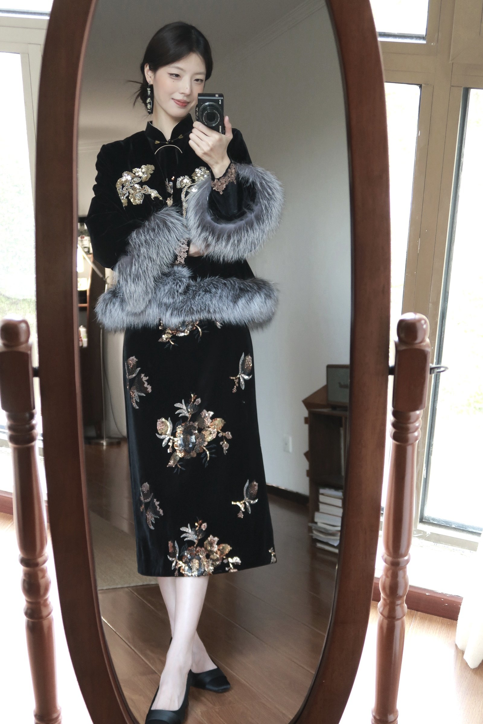 无艳一禾【墨羽金枝】原创新中式国风绣花黑色短款丝绒羽绒服女 购买地址 复制https://item.taobao.com/item.htm?id=991339788142 一套入~做工精致,面料穿着舒服,上身显气质也好高级呀,爱啦~原创设计yyds,冬天也可以穿好看的新中式~很有质感这个刺绣太好看了!整个人都太是那味儿了~ 袖子的毛毛摸着好舒服👍👍好看的,一套都入手的,质感很棒,拍照绝美太好看了,拍照特别的出片我的身高体重:175/97 一套很贵气的感觉!毛领也很柔软,上身效果特别好!相关 发布于 衣服 标签 新中式, 羽绒服 上篇文章: Mimo dk新中式国风水滴领短袖提花性感改良旗袍气质连衣裙 蓝佳人 下篇文章: 新中式连衣裙女高级感名媛气质印花改良旗袍缎面性感收腰包臀长裙