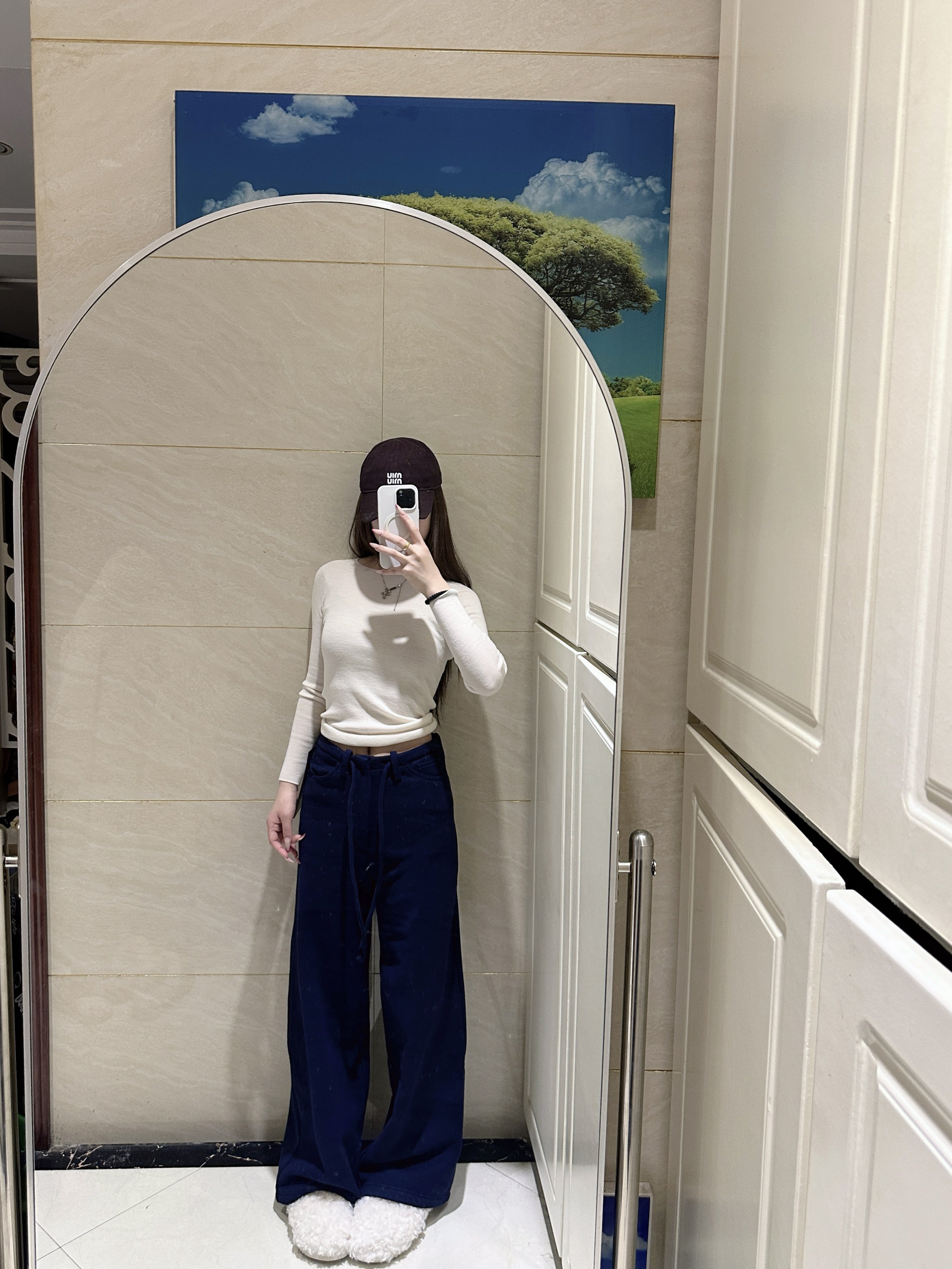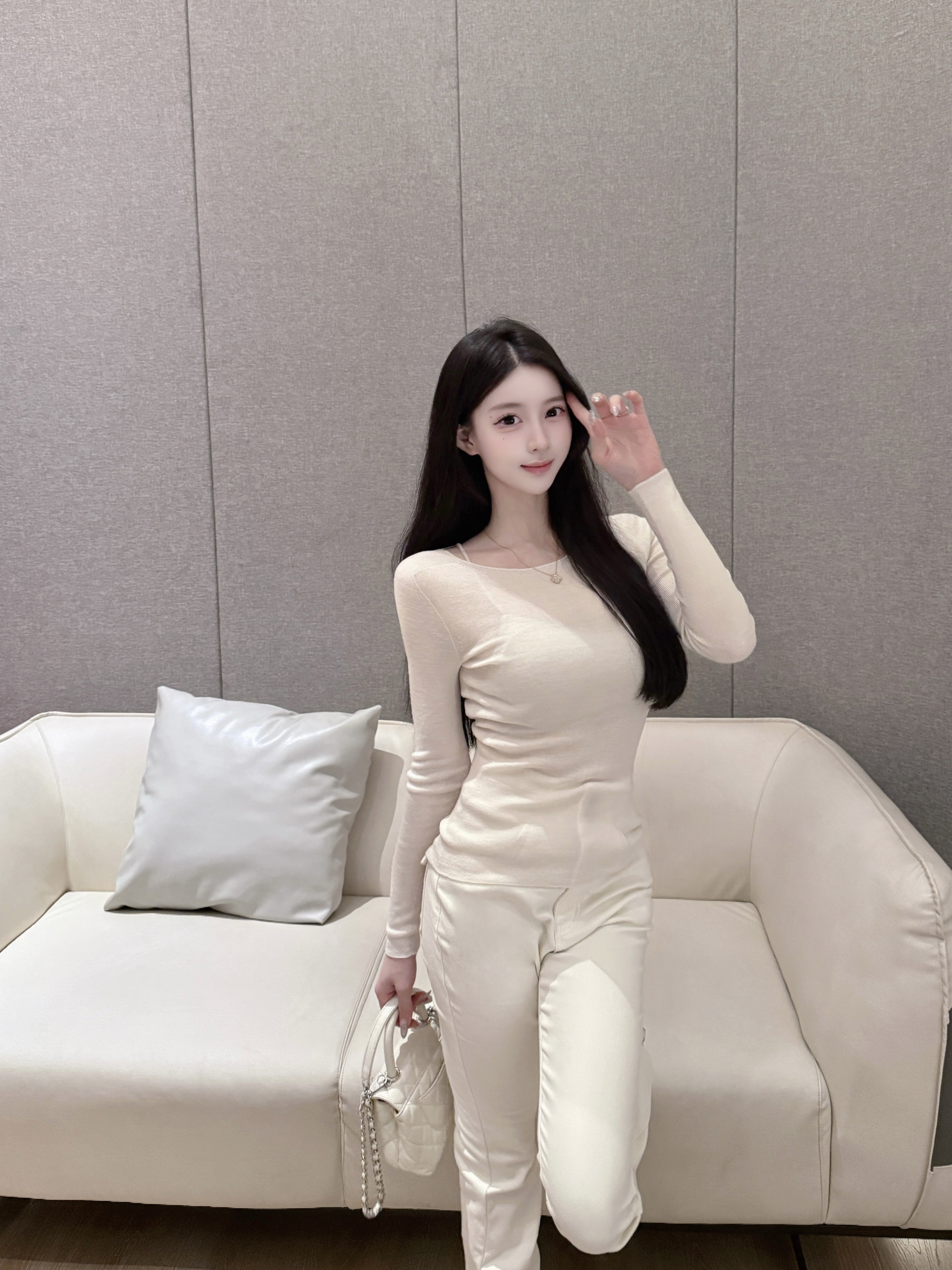 这件白色高领针织衫的面料摸起来软糯亲肤 贴身穿完全不扎 舒适度拉满~