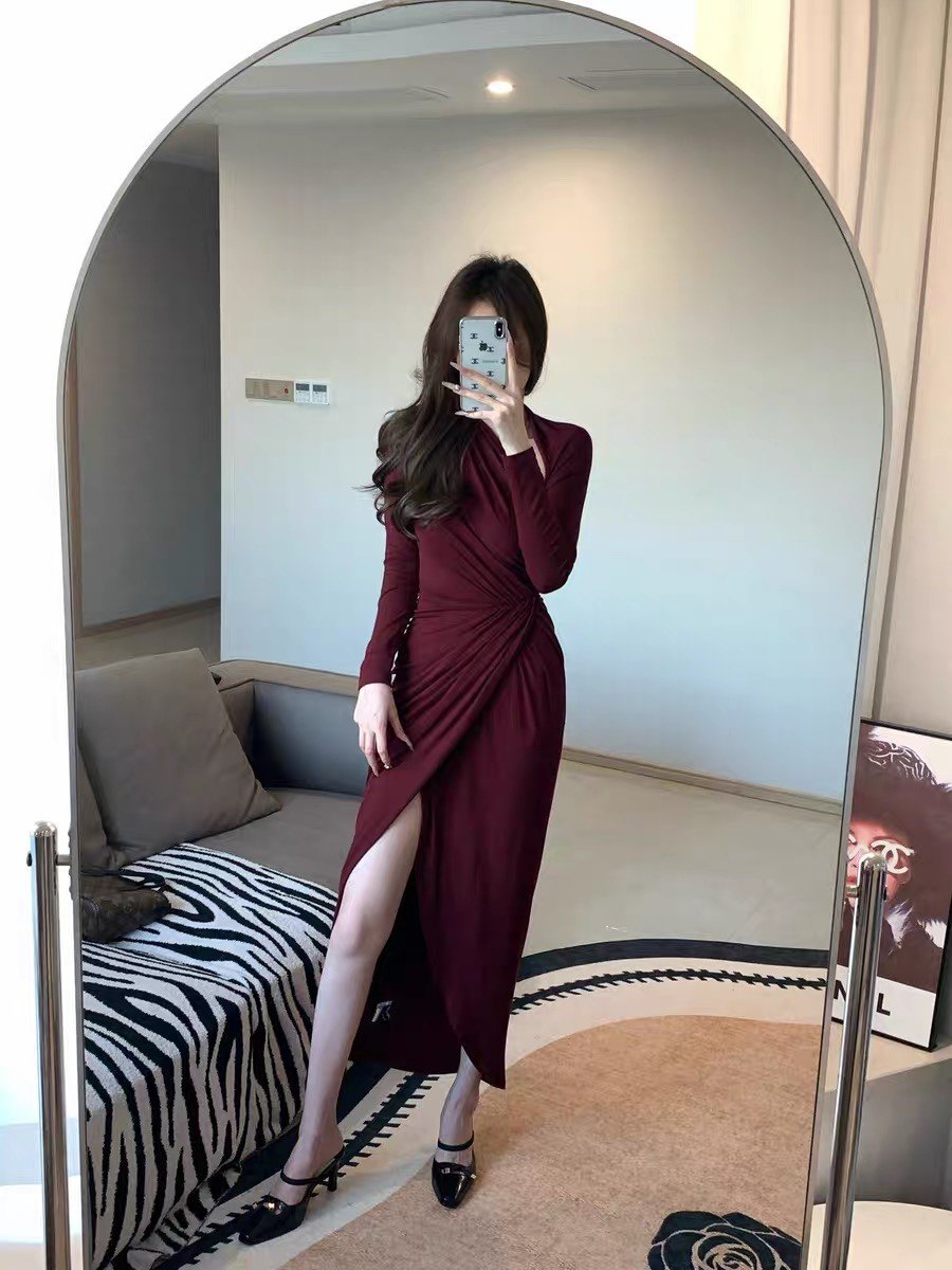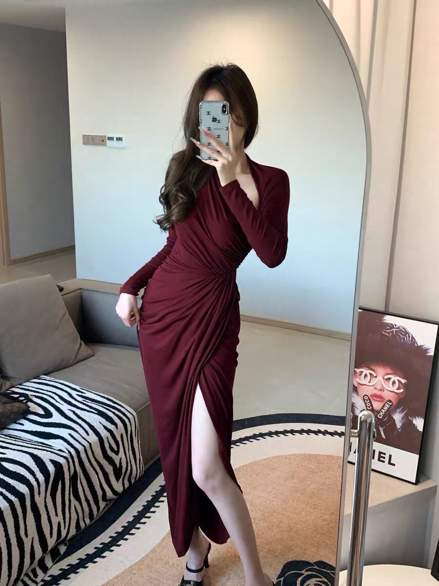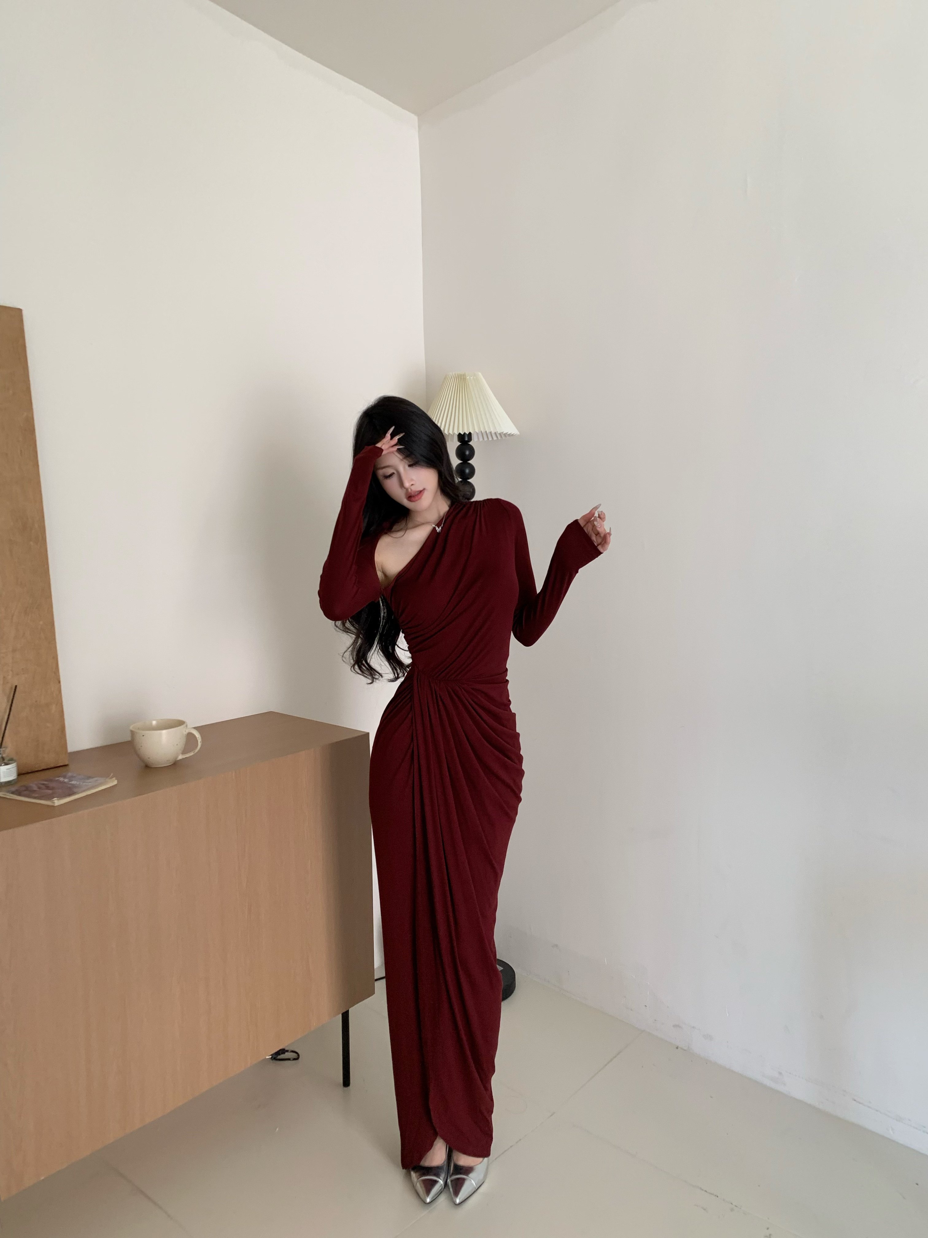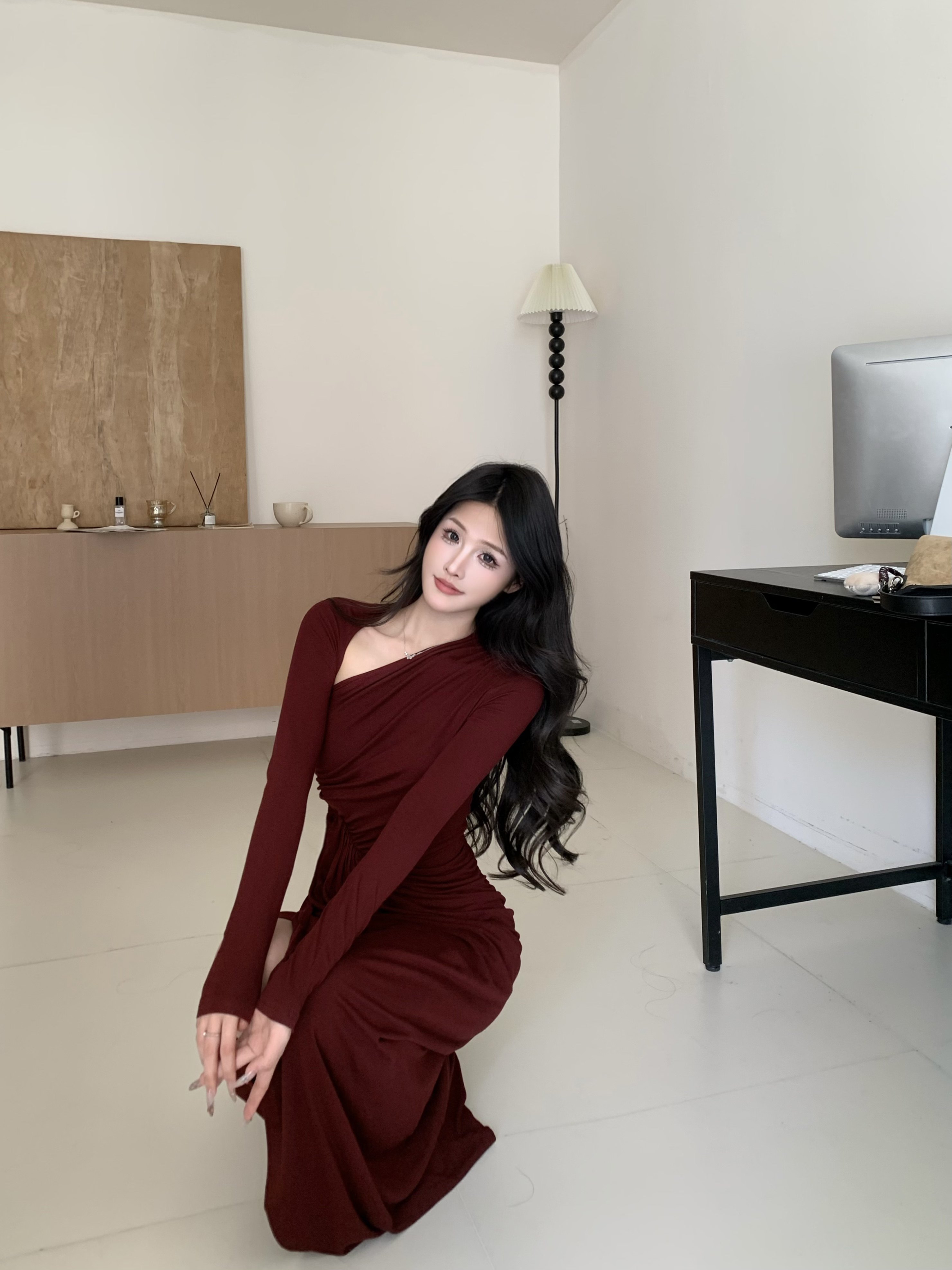 JAYKY YANG【杜塞之夜】斜肩褶皱长裙|设计感斜肩剪裁露肩不张扬,勾勒优美肩颈线;立体褶皱修饰身形,收腰版型掐出小蛮腰,下摆修身包臀尽显曼妙曲线。垂坠面料亲肤顺滑,走动间灵动飘逸。日常约会、晚宴派对、闺蜜小聚都能穿,轻松穿出优雅气质,是衣橱里的氛围感战袍!