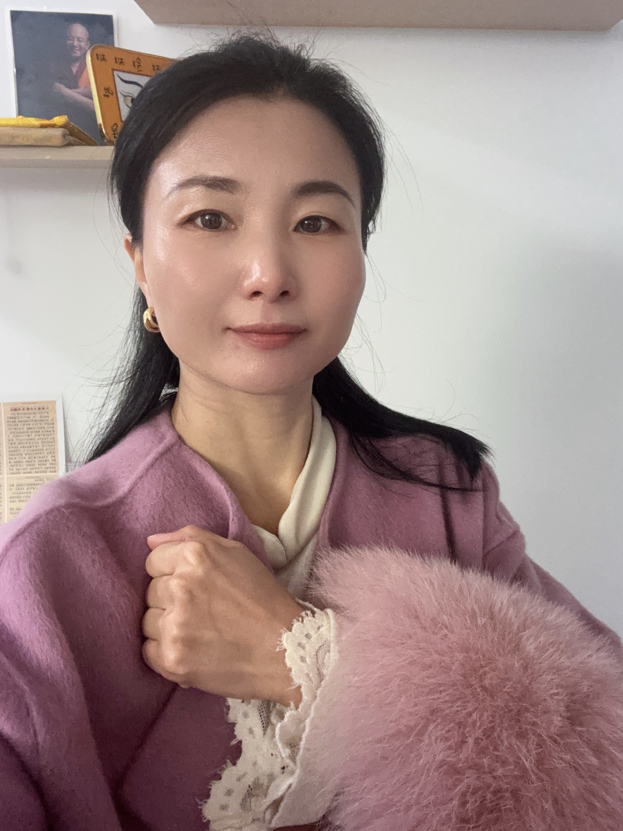 好显气色,跟详情图一模一样,没有色差。上身很轻盈,但是也很保暖,盘扣加了点国风元素,雍容华贵,适合过年穿
