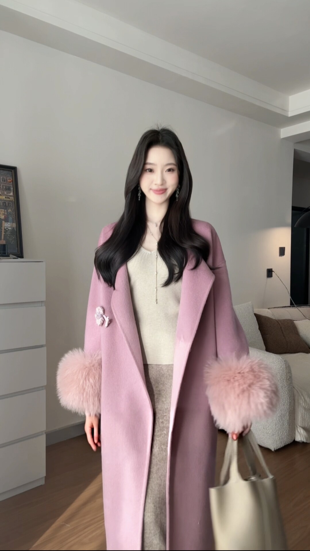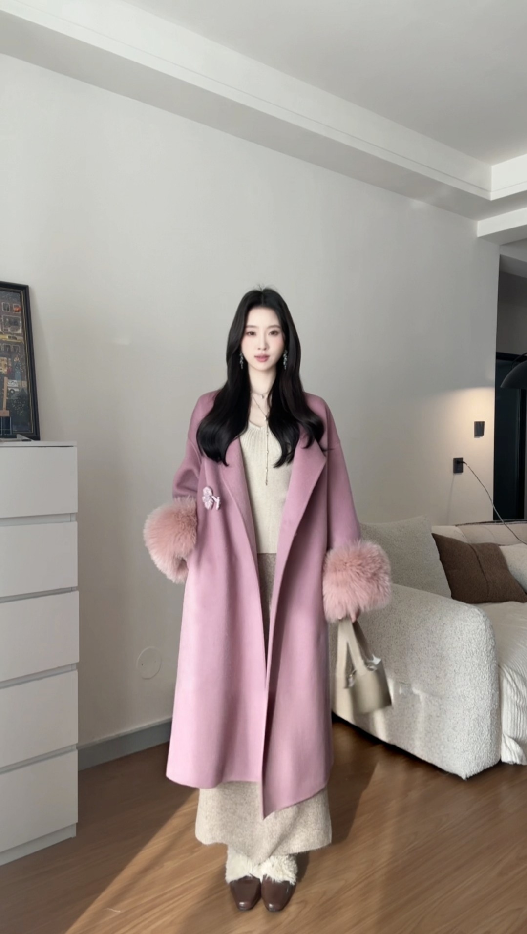 好看 这个颜色的大衣还挺显白的 超级有氛围感 而且毛毛很重工非常好看🤩