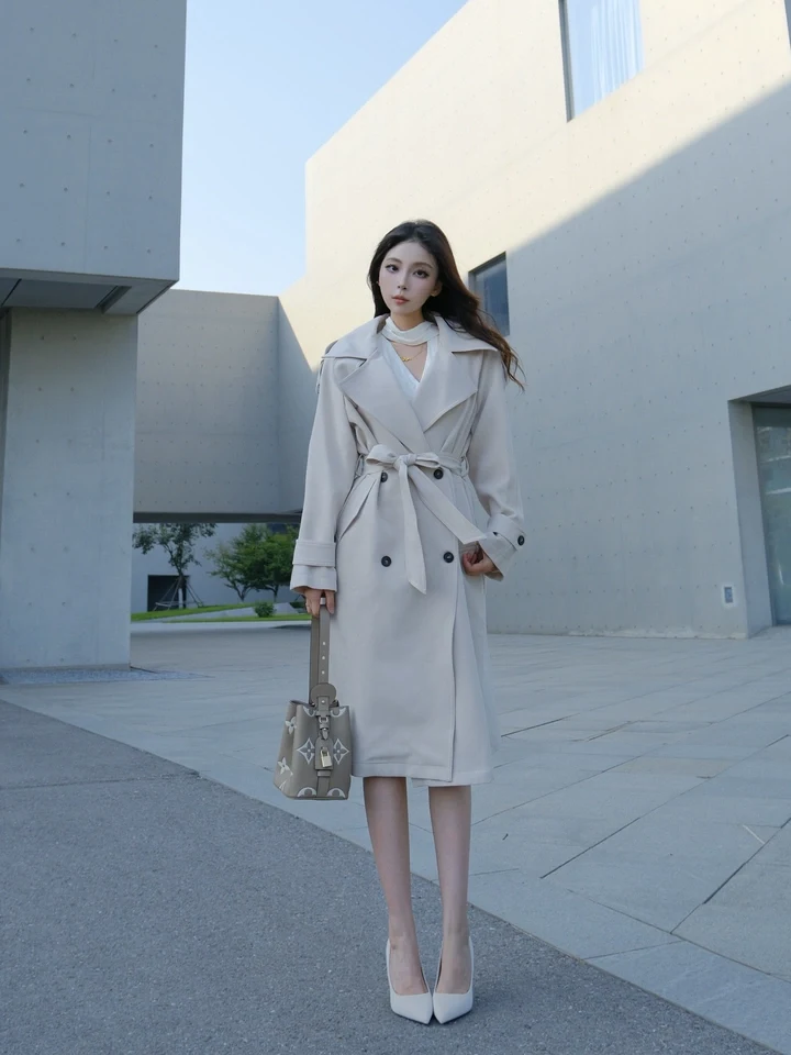 风衣的质感很好,上身版型挺廓,很显瘦,穿起来很气质 搭配高跟鞋穿很好看 搭裤子也好看 超级百搭 很厚 […]