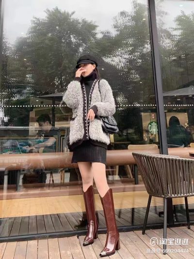 [木木时代]气质粗跟高筒瘦瘦长筒尖头高跟鞋长靴
