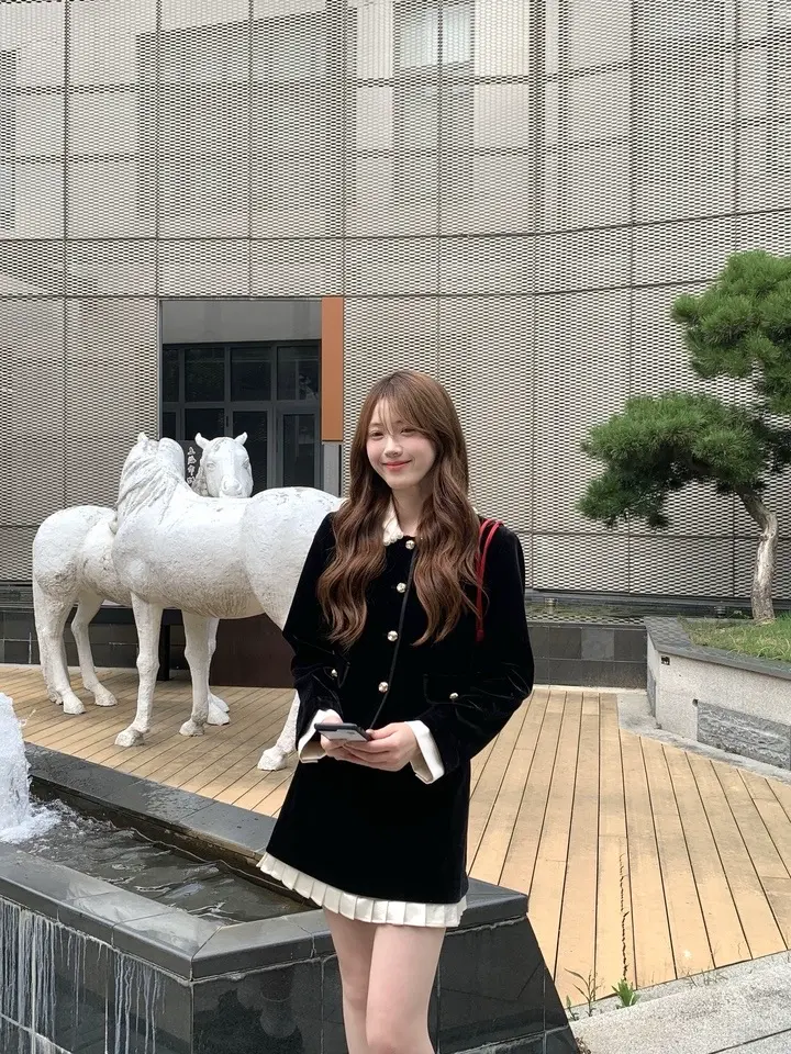 杨小卷 miu系富家千金风黑色丝绒套装两件套 珍珠娃娃领小香外套