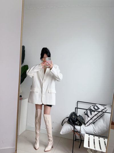 [沃美琳]显瘦真皮尖头粗高跟长筒靴大筒围过膝斜口高筒靴