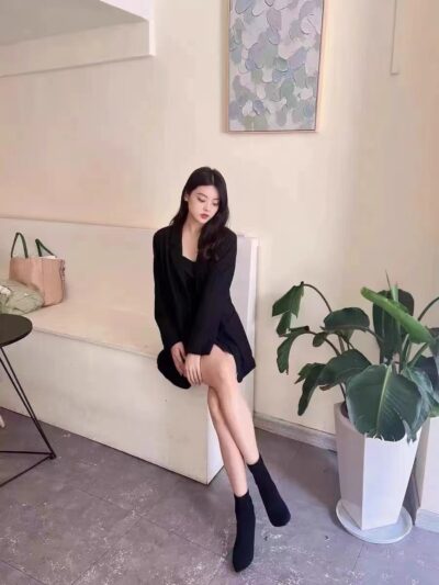 达芙妮厚底过膝靴女长筒靴黑色弹力高筒靴小个子加绒长靴
