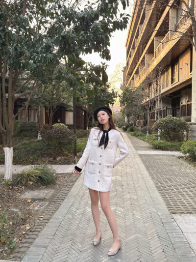 达芙妮高跟短靴女季白色加绒靴子法式蝴蝶结马丁靴