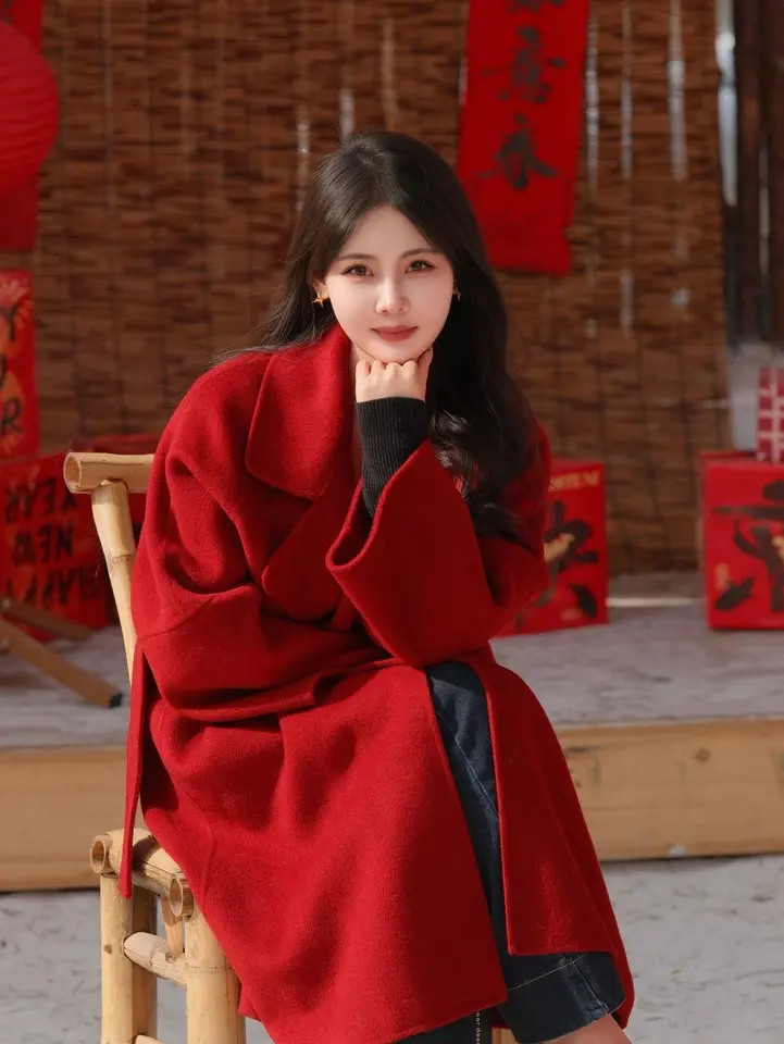 MuMu沐沐高端定制,以红色双面羊毛大衣致敬新娘的高光时刻。绵羊毛材质软糯奢暖,双面呢工艺轻盈挺括,中长款剪裁利落大方,敬酒行走间尽显从容姿态。红色基调喜庆显白,既是婚礼上的敬酒服,亦是新年里的战袍。搭配长靴利落时髦,配高跟鞋优雅迷人,让新娘在人生重要时刻,美得温暖而耀眼。