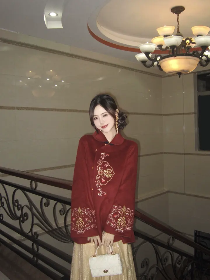 杜屁屁桃原创「福星高照」系列新年华服,将传统年味与新中式美学巧妙融合。本套拜年装甄选100%纯羊毛双面呢料,触感细腻柔暖,挺括有型,于冬日严寒中尽显温润质感。设计上承袭国风雅韵,以经典盘扣、吉祥纹样与精巧绲边等元素点缀,寓意“福星高照”,是新春佳节馈赠亲友或出席重要场合。
