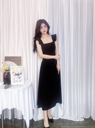 [DPLAY]夏季女装气质黑色连衣裙气质修身吊带裙长裙大摆裙小黑裙女