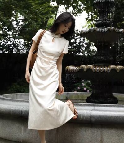 [DPLAY]夏中式连衣裙国风裙子改良旗袍短袖缎面连衣裙裙子女