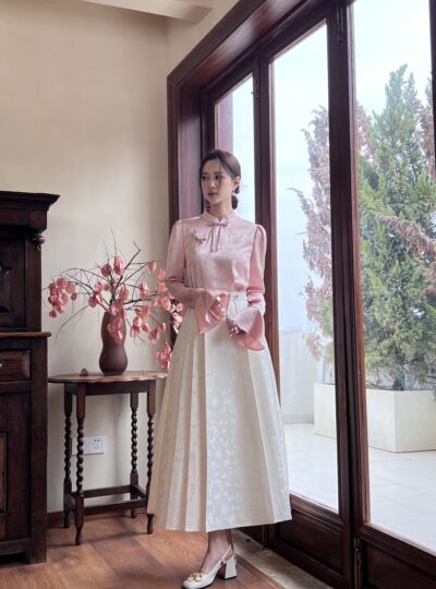 [DPLAY]白色国风长款半身裙收腰新中式马面裙百褶裙