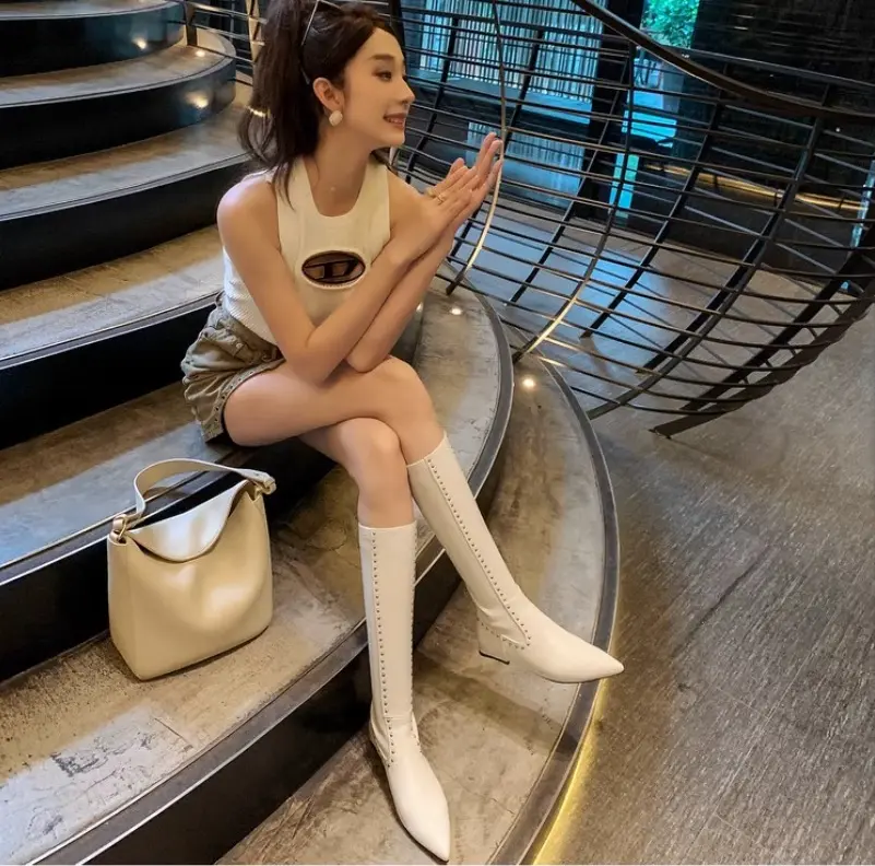 MDyy手工女靴倾情呈现:甄选进口超正胎牛皮,以匠人之手精心打磨每一处细节。标志性凯莉扣点缀靴筒,低调中透出高级品味。低跟设计兼顾舒适与优雅,平底般自在却暗藏增高巧思。高筒靴型流畅贴合腿部线条,不过膝长度更显干练,既是显瘦骑士靴,亦是百搭长靴,让每一步都走出从容姿态。