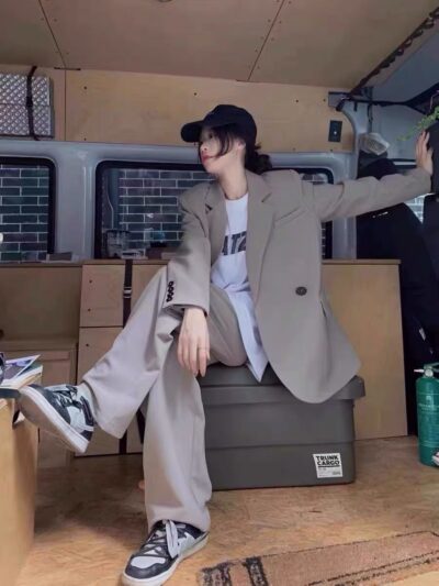 [SO STUDIO]灰色西装套装女高级感春秋韩系小个子休闲西服外套两件套