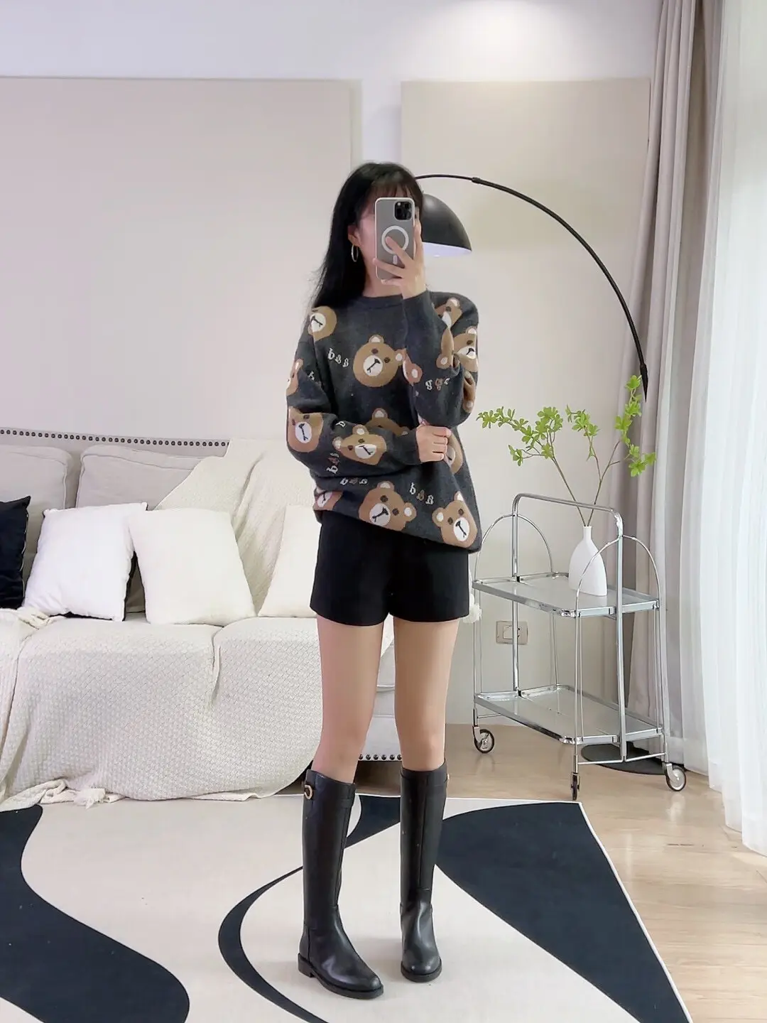 穿着增高好多~买了有点绒的穿着很暖和 很喜欢,新宠 上脚效果真的不错,我的肉腿都看起来修长了,挺喜欢的哈
